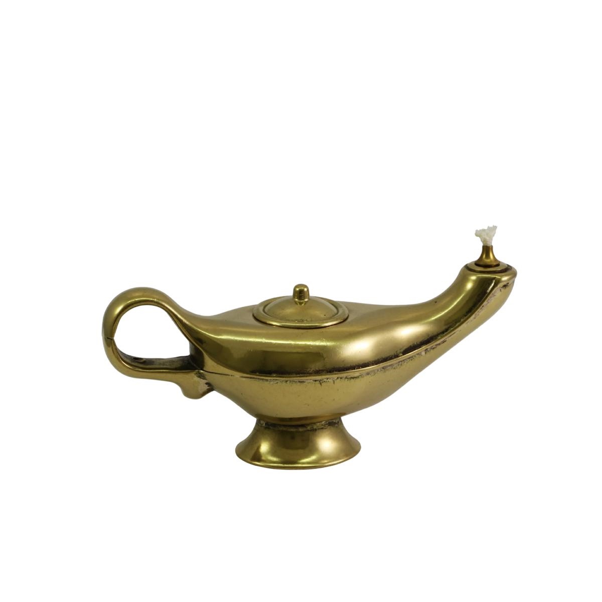 Lampada in ottone lucido stile Aladino per cera liquida, completa di stoppino.