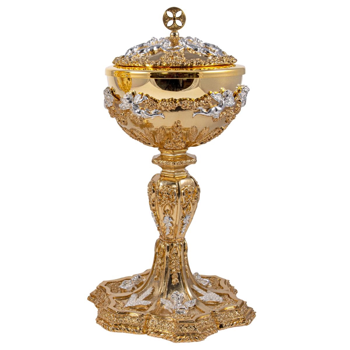 BAROQUE GOLD PLATED CIBORIUM WITH SILVER-PLATED ANGELS