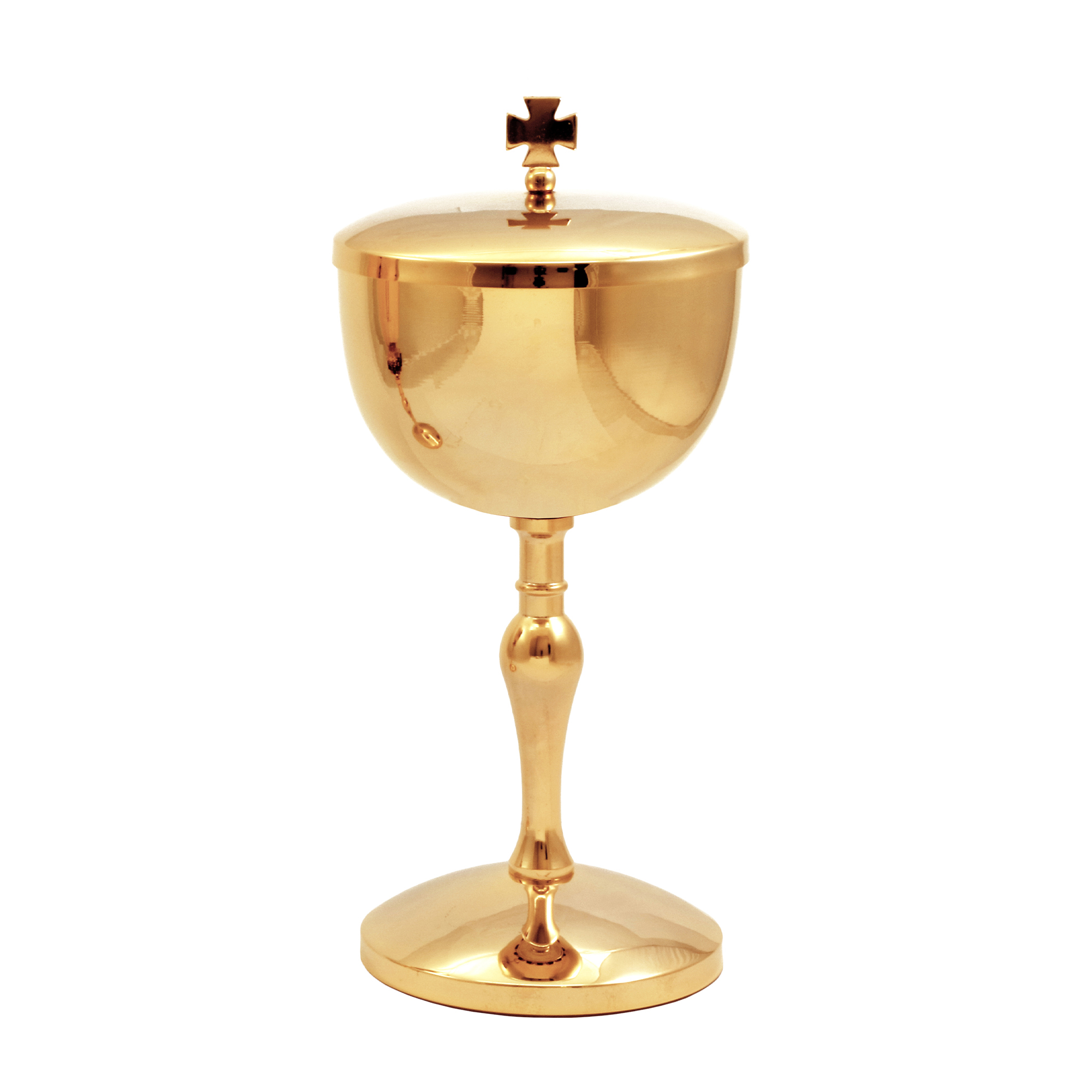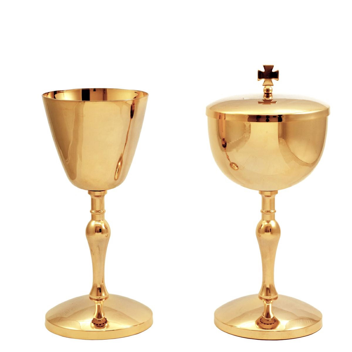 Calice e Pisside in ottone dorato dalle linee semplici.