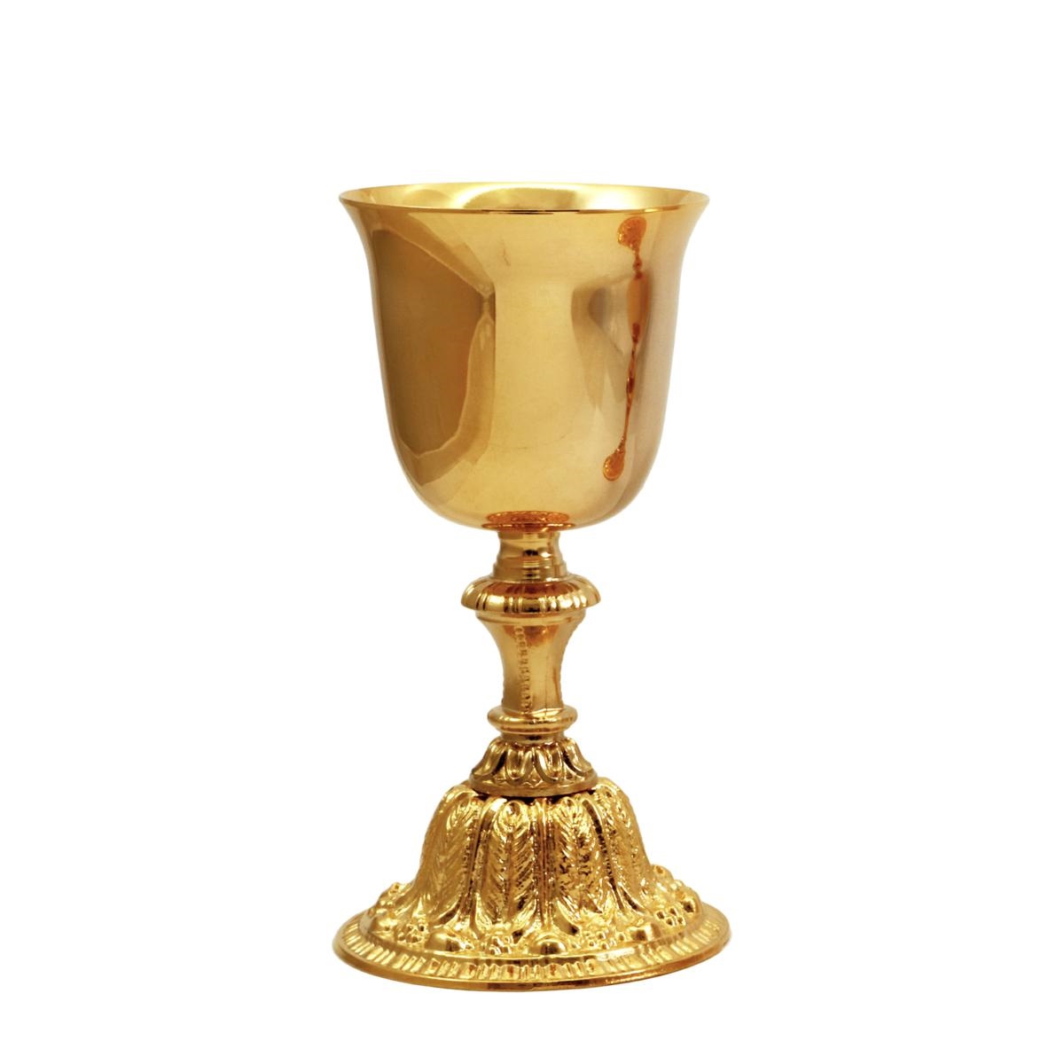 Calice e Pisside in ottone dorato con base barocca e nodo in fusione.