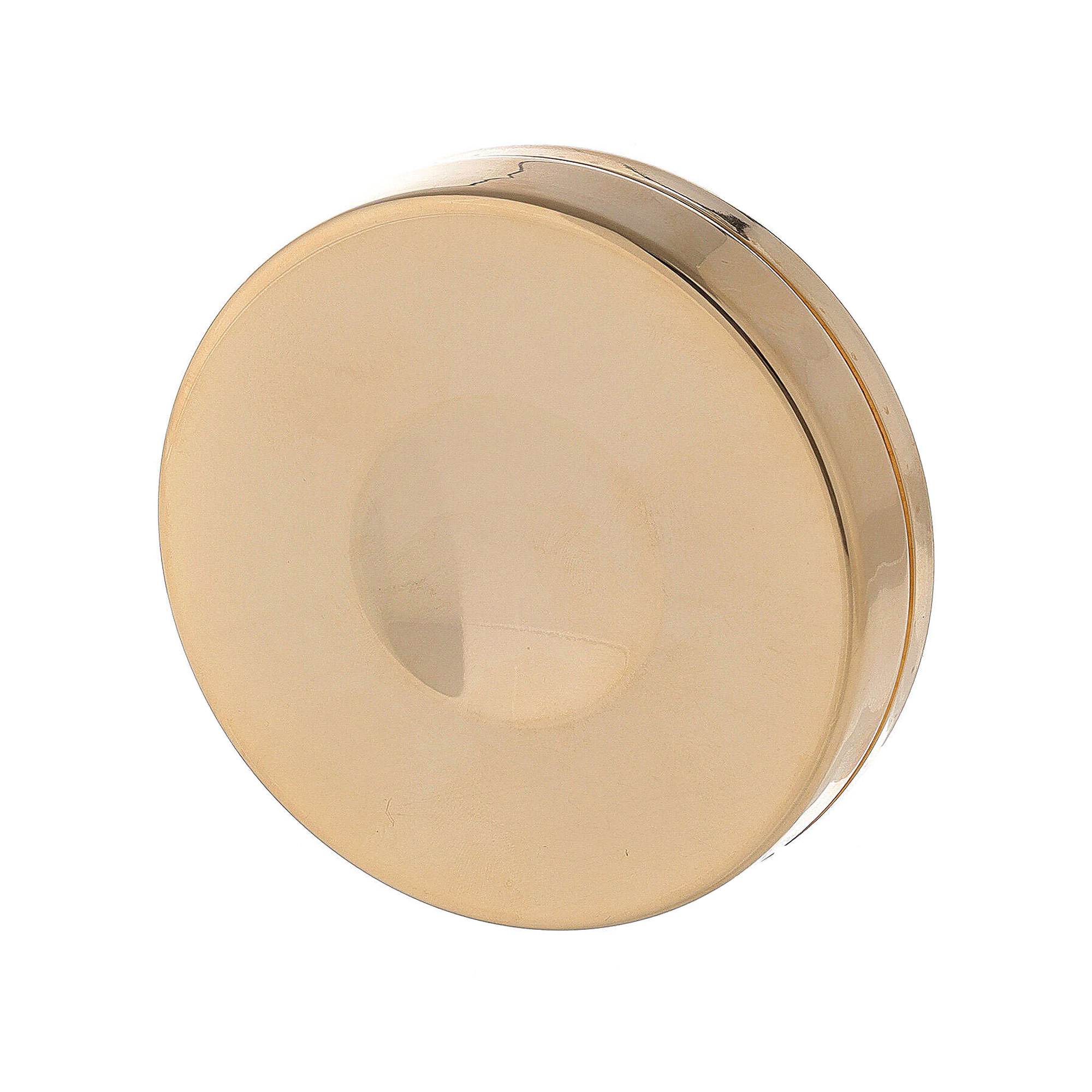 Host box in gold plated brass with a decorative hand-enamelled plaque depicting Christ on the Throne and the symbol of the Alpha and Omega.