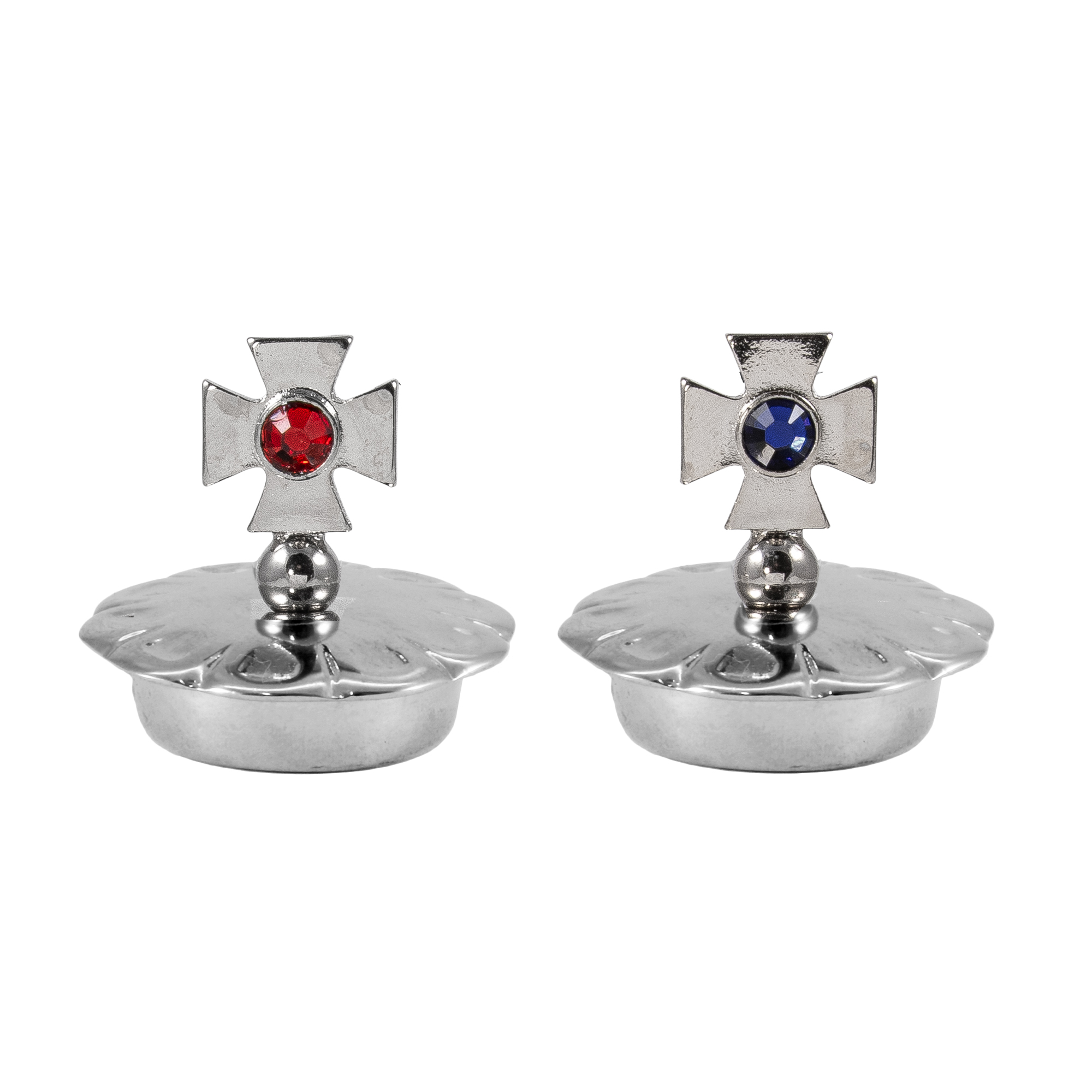 Brocchette in vetro modello "Ravenna" con tappi in fusione con croce argentata.