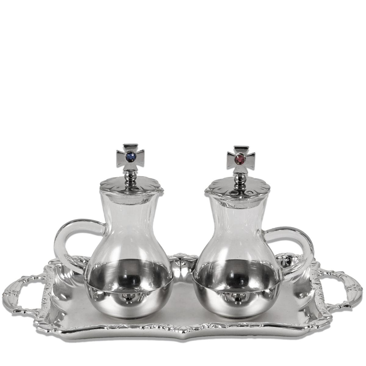 Brocchette in vetro modello "Parma" con tappi in fusione con croce argentata.