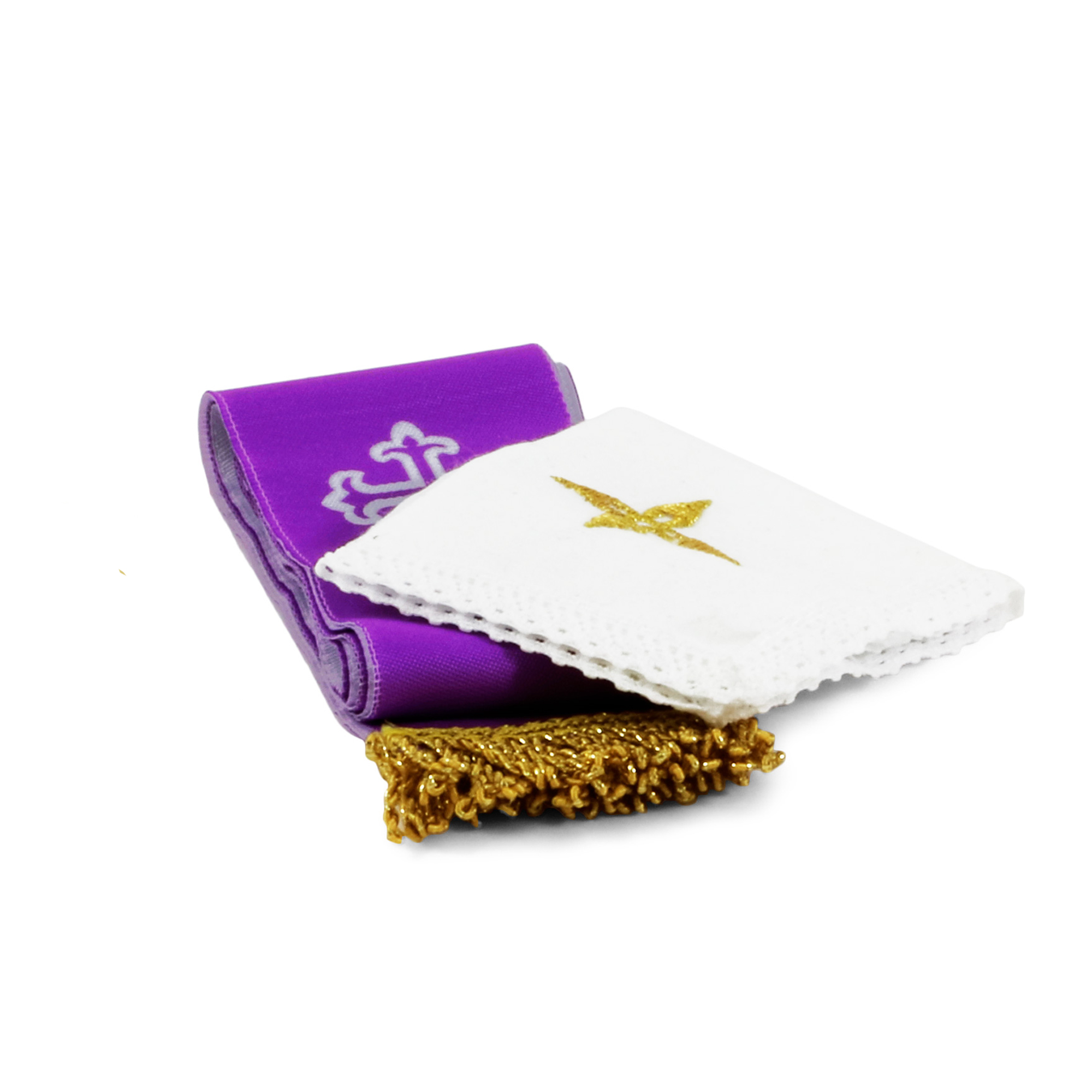 -Purifichino 10 x 10 cm. in cotone 100% con croce ricamata a filo dorato.