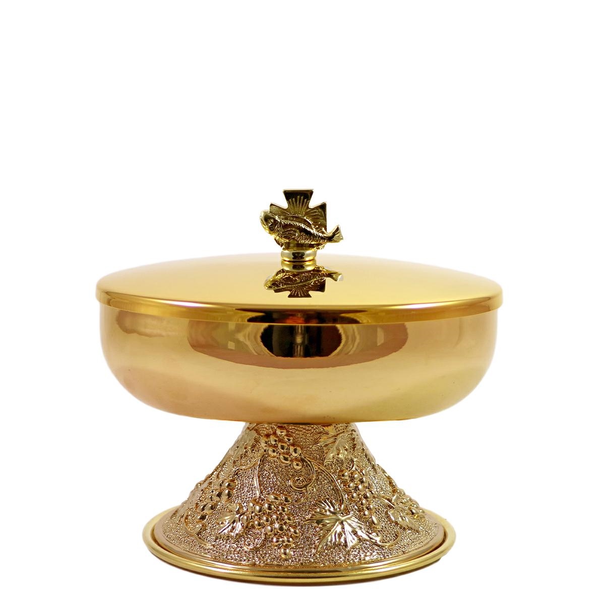 GOLD PLATED BOWL CIBORIUM WITH GRAPE BASE
