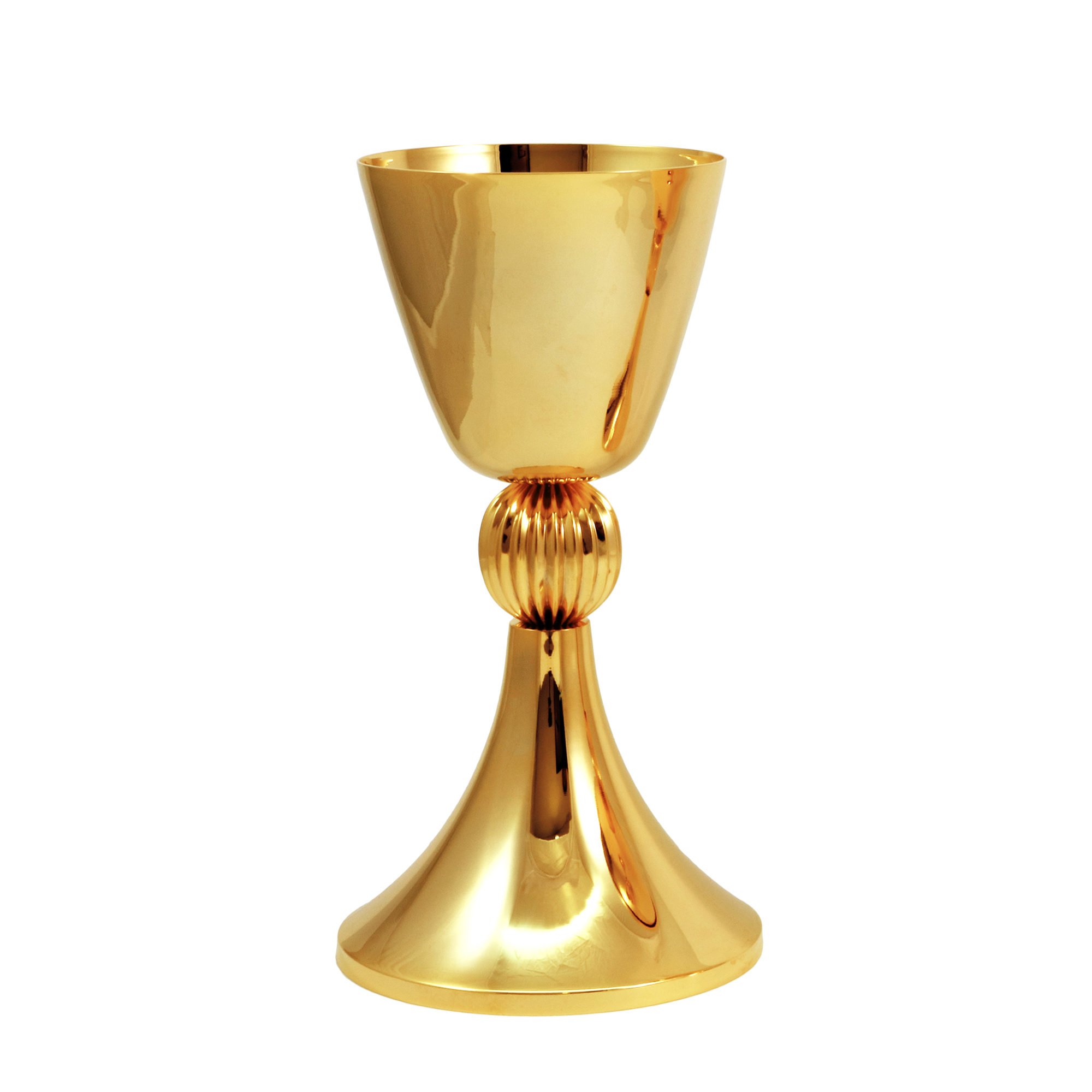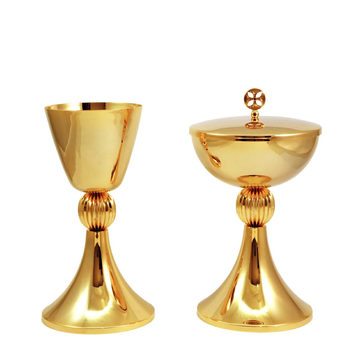 Calice e Pisside in ottone dorato con particolare nodo con rigature in finitura dorata.