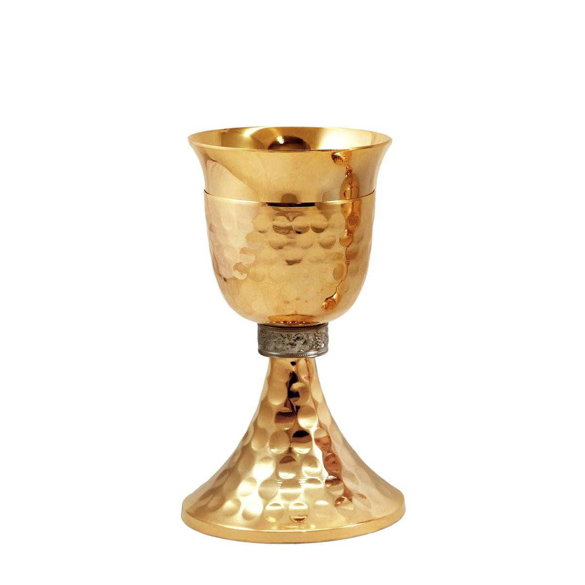 CALICE DORATO CON MARTELLATURA E NODO ARGENTATO