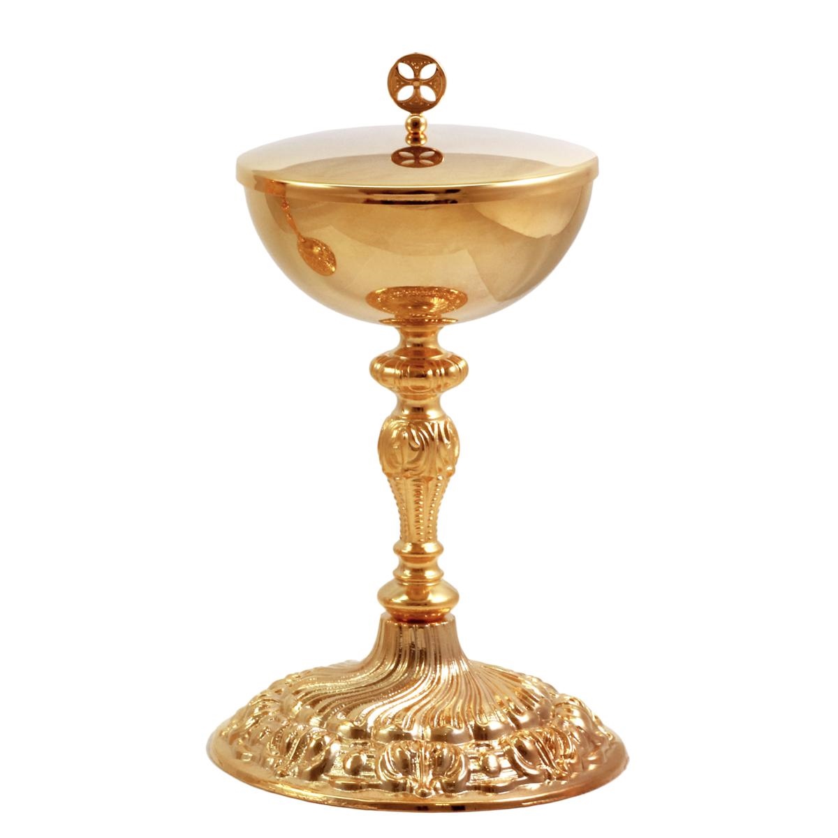 La Pisside è alta 17,5 cm. ed ha un coppa di Ø 12 cm. che può contenere fino a 150 particole.