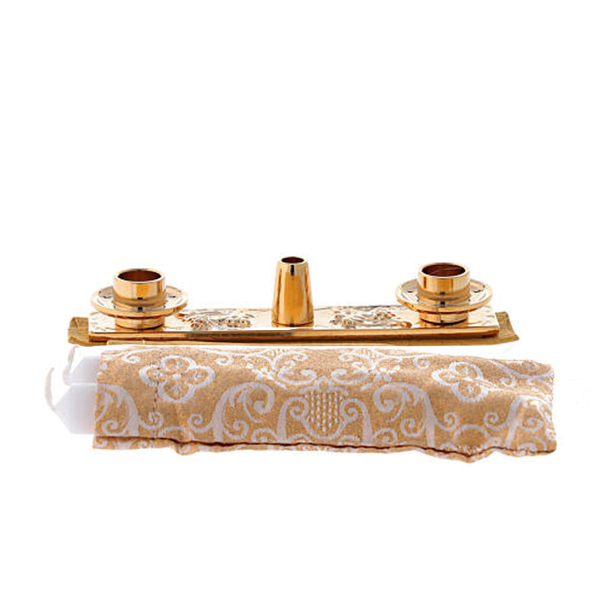 -Croce Pastorale e Candele in cera con portacandele in tessuto coordinato.