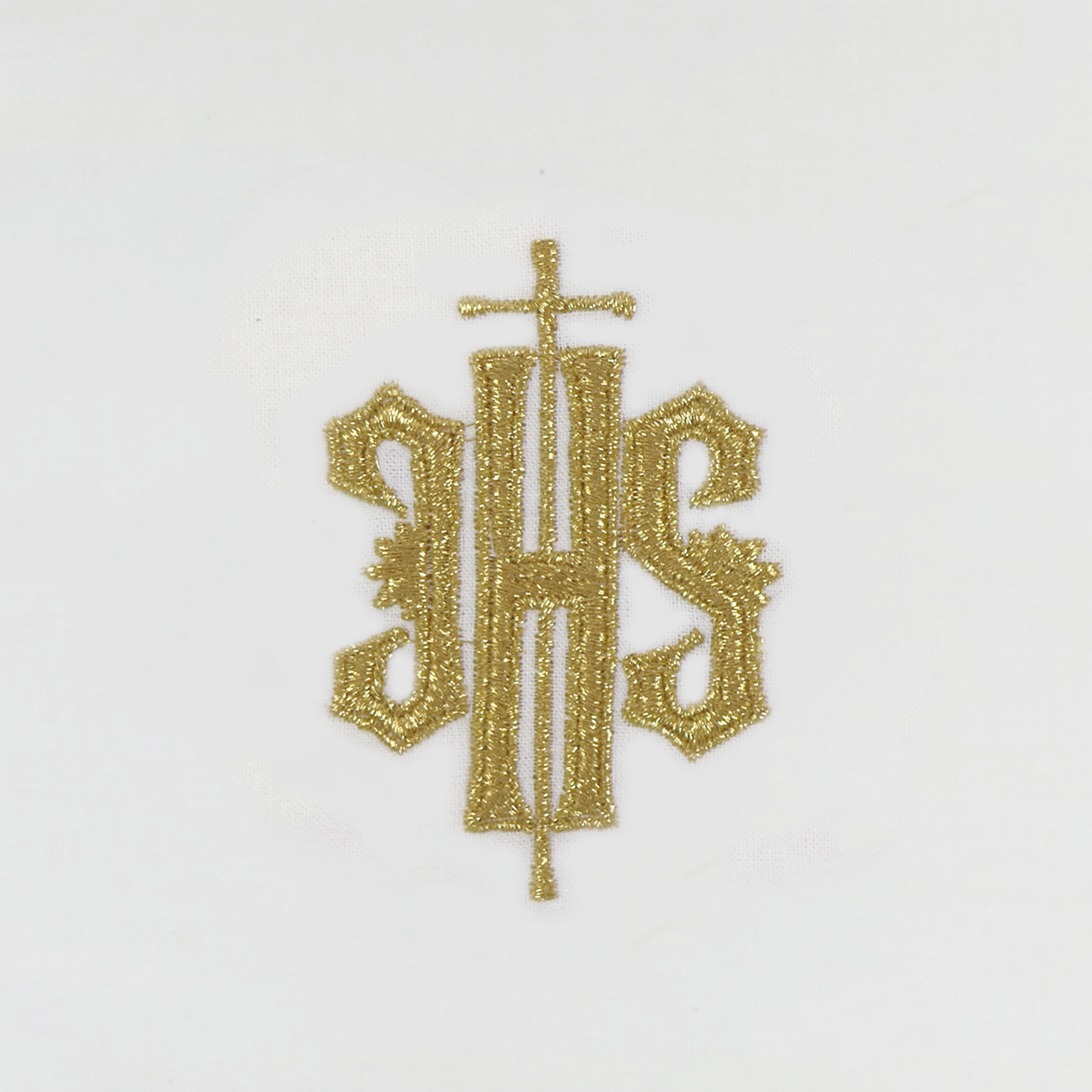 Rigid chalice ball made of 100% cotton, with JHS embroidery in gold thread.