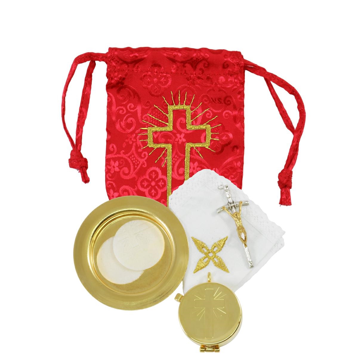 -Teca Eucaristica in ottone dorato con Crce incisa. La techina ha un diametro di 4 cm.