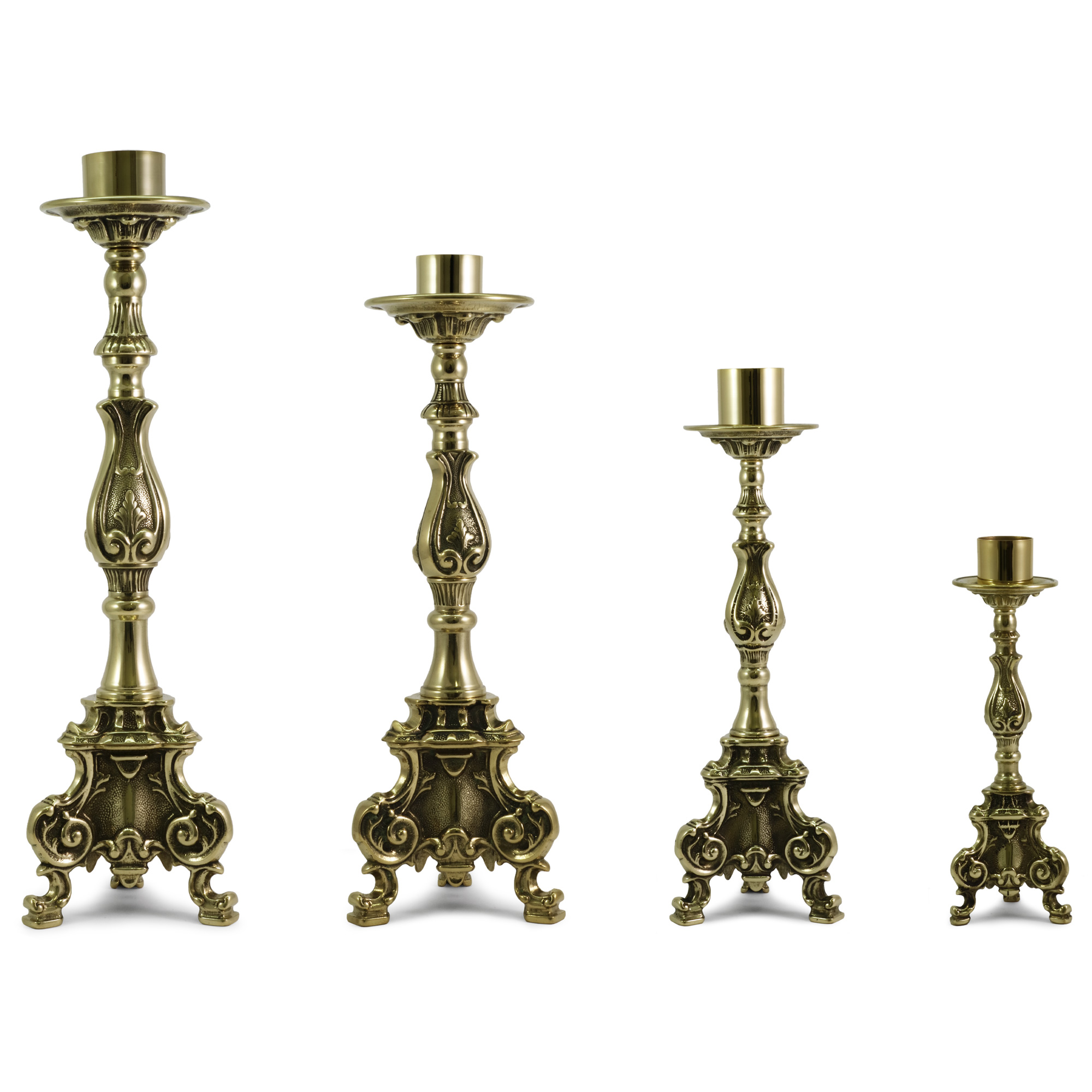 Candelieri da altare in ottone lucido con bossolo per candela a cera liquida da Ø 4 cm.