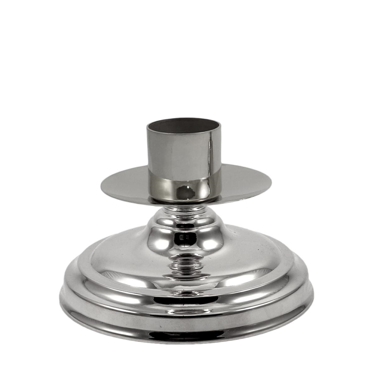 SILVER TONE CANDLESTICK ON SIMPLE BASE H. 10 CM.