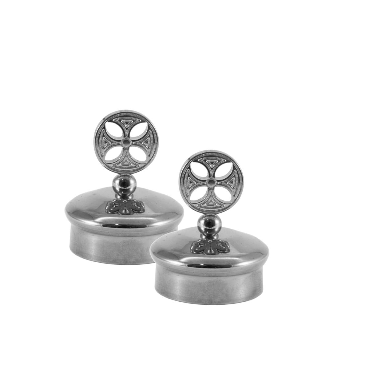 Coppia tappi tono argento per brocchette in vetro, con Croce tonda.