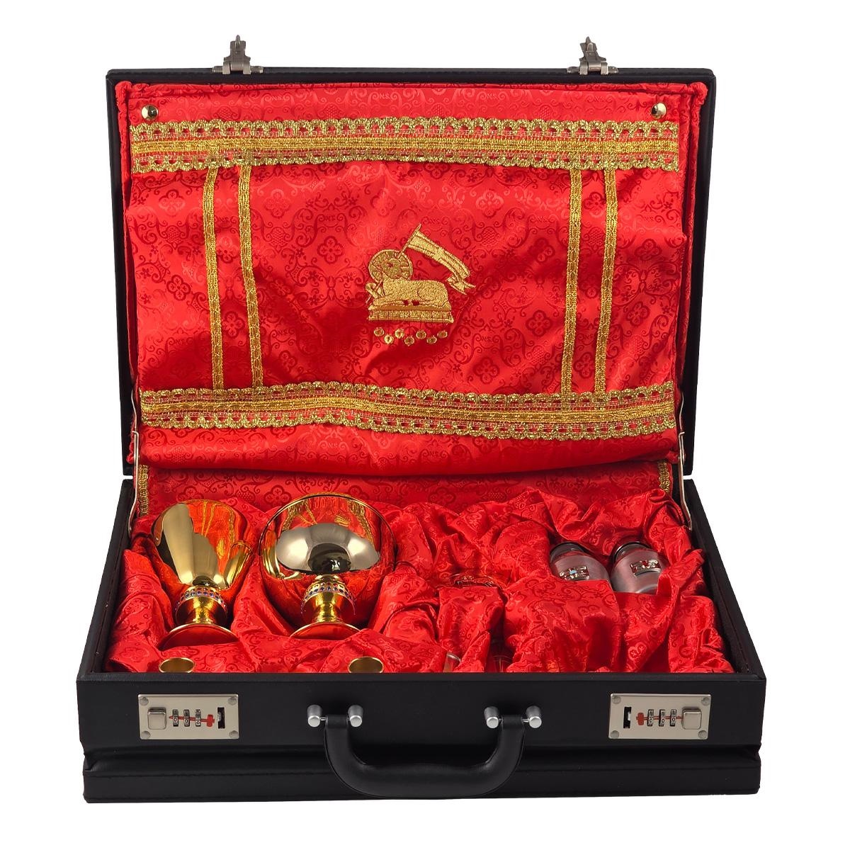 - Chalice in gold-plated brass with hammered base. The chalice is 10.5 cm tall with a 6.5 cm diameter cup and can hold up to 120 ml of wine.