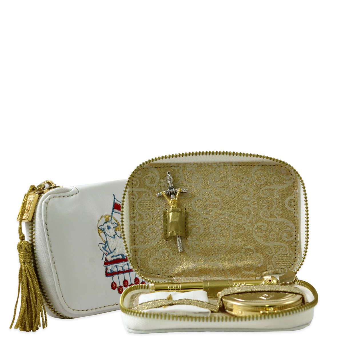 WHITE ECO LEATHER SICK CALL SET "LAMB 7 SEALS" STYLE