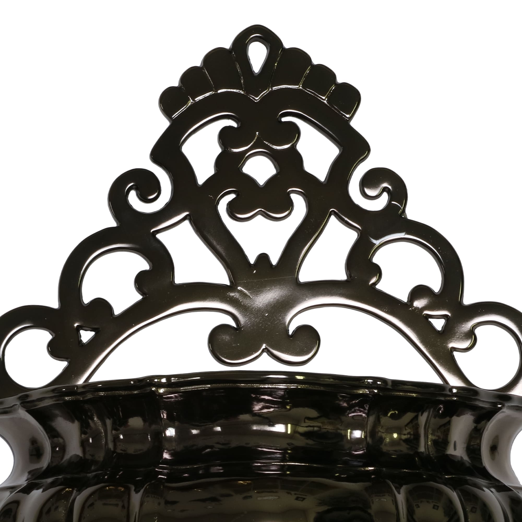 Questa acquasantiera è caratterizzata da un decoro raffigurante con conchiglia. Grazie al forellino nella parte superiore, è possibile appenderla al muro.