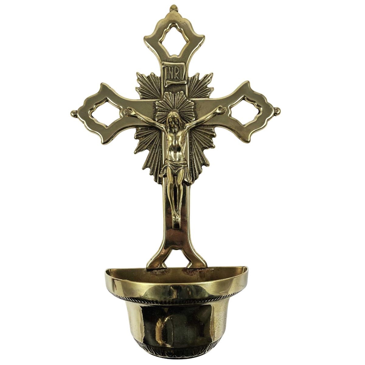 ACQUASANTIERA IN OTTONE CON CROCE BIZANTINA