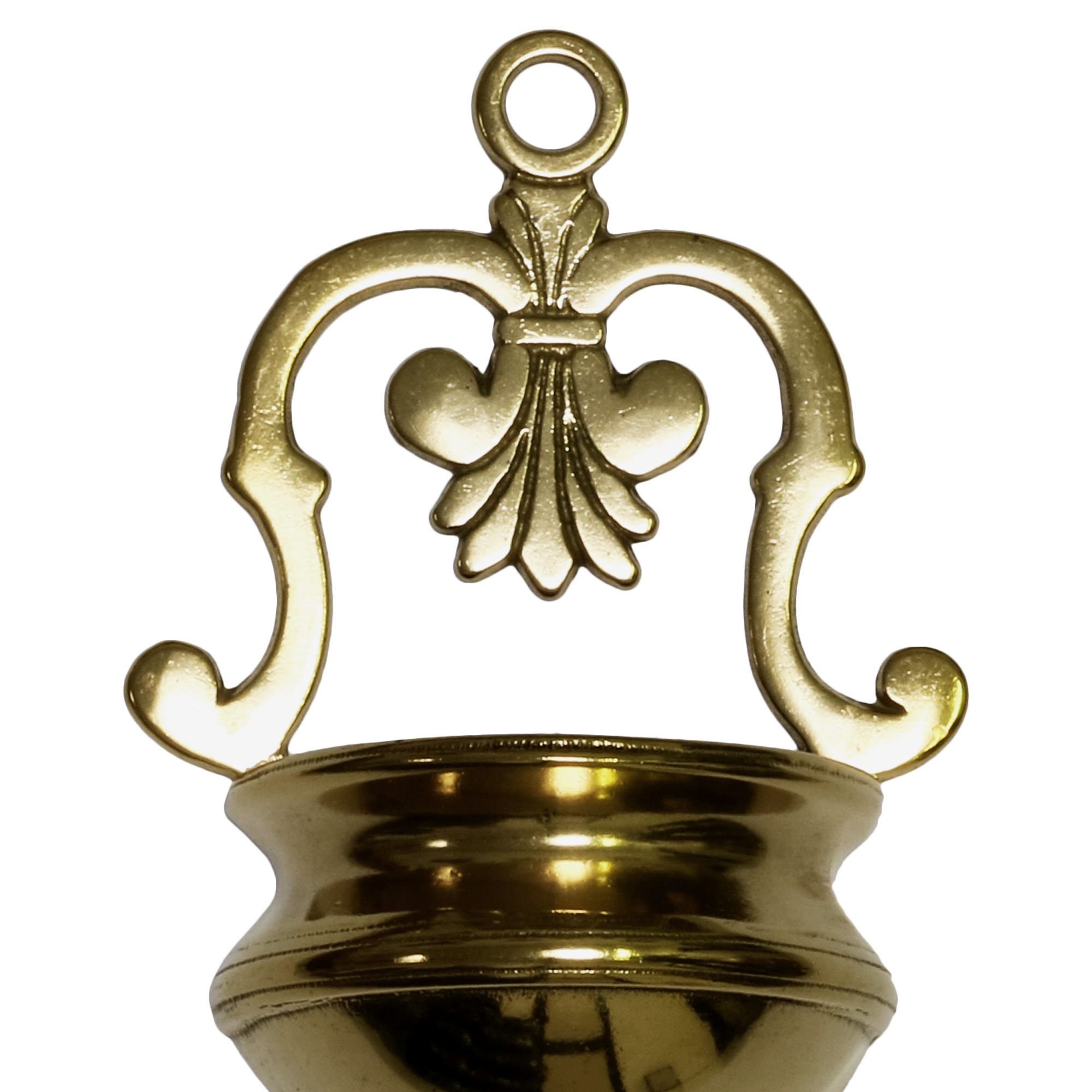 Acquasantiera in ottone lucido di altezza 19 cm.