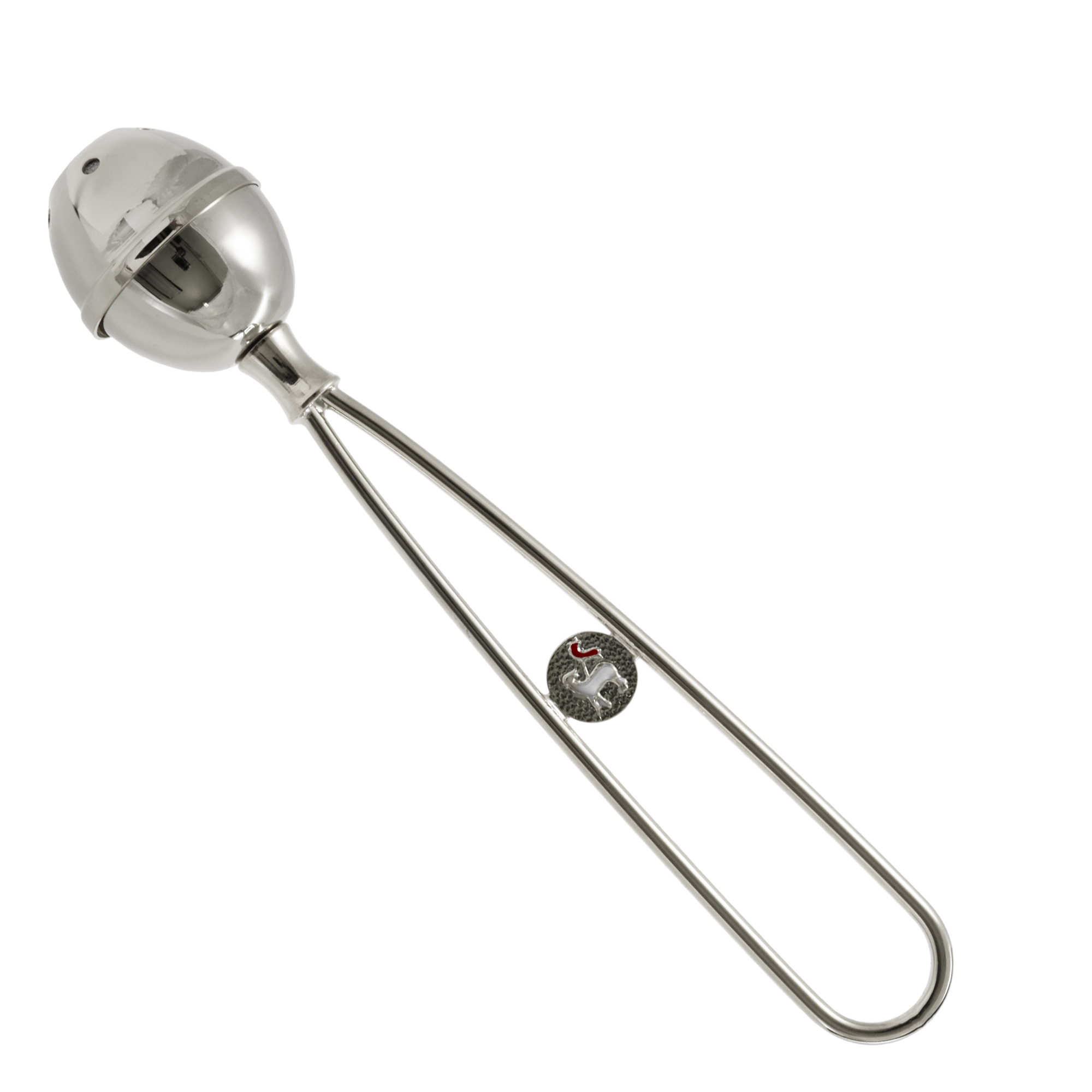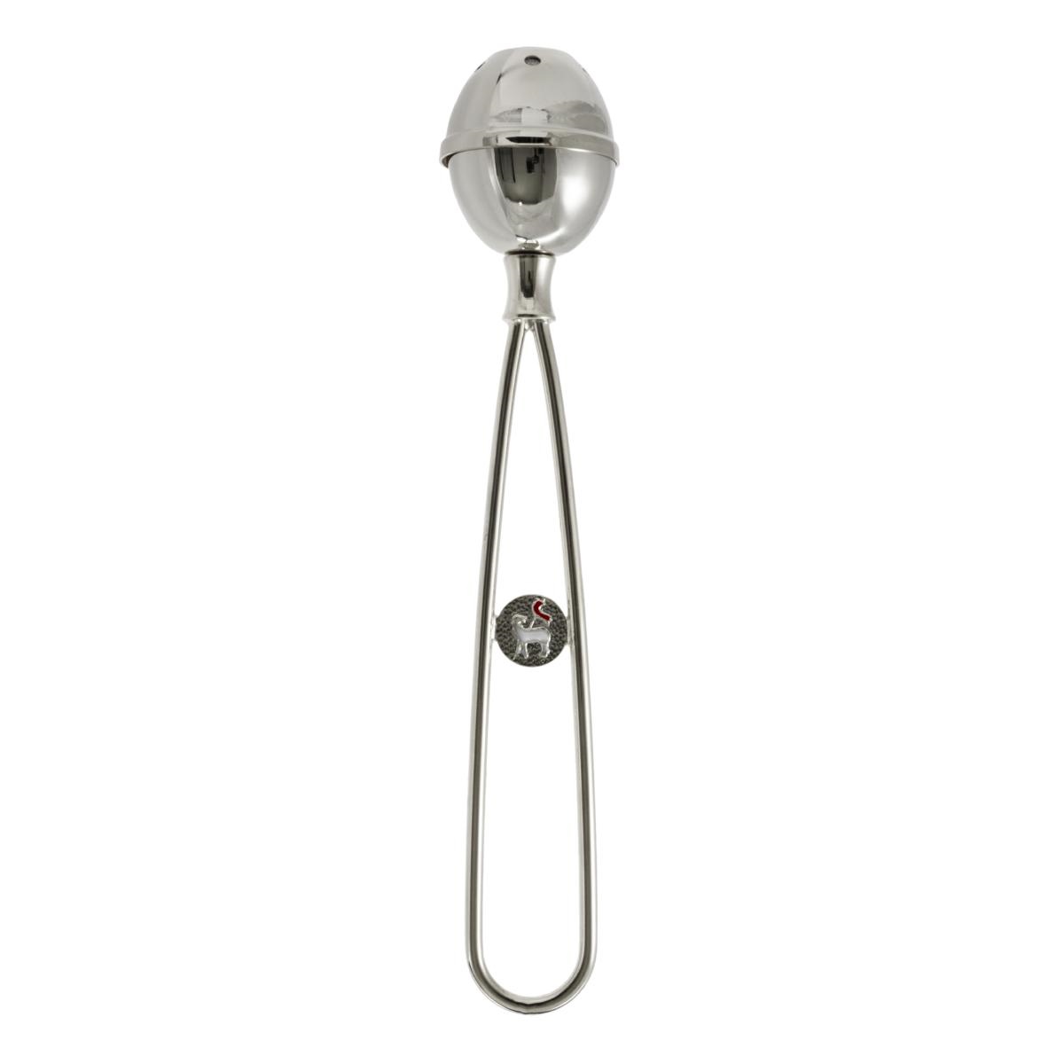 Asperges per benedizione in ottone tono argento con placchetta decorativa al centro, raffigurante l' Agnello della Pace.