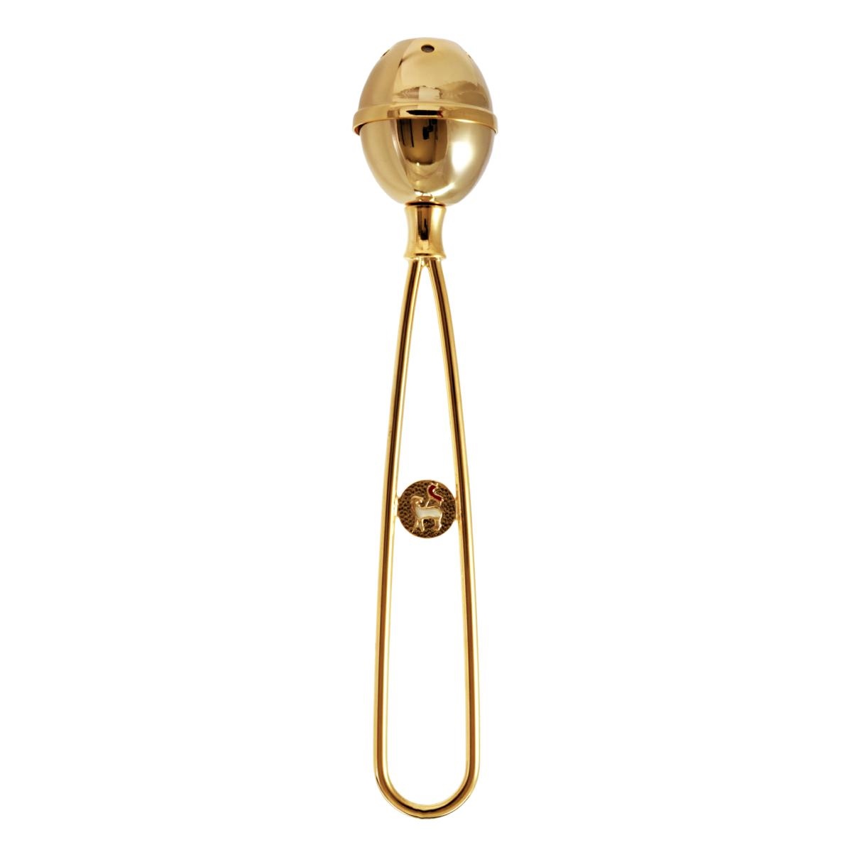 Asperges per benedizione in ottone dorato , con placchetta decorativa al centro raffigurante l' Agnello della Pace.