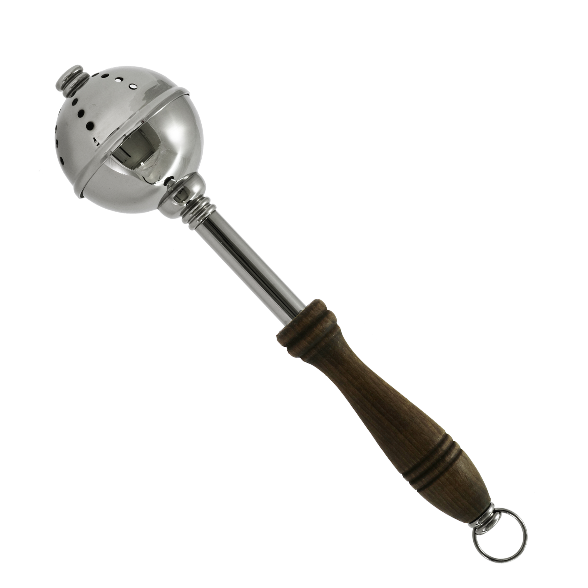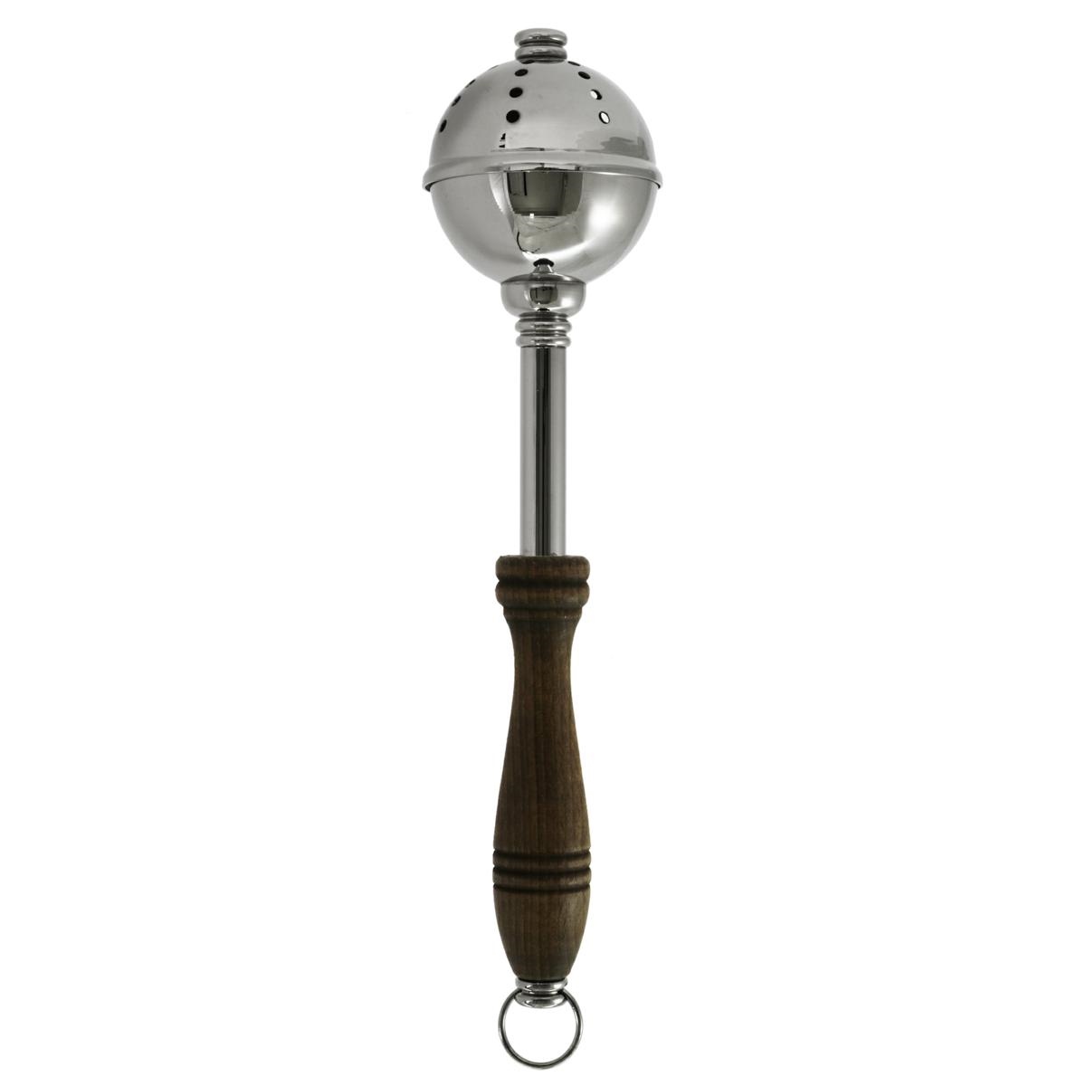 Asperges per benedizione in ottone tono argento, con manico di legno con impugnatura ergonomica.Grazie al suo pratico anello sul manico è possibile appenderlo al porta turibolo.