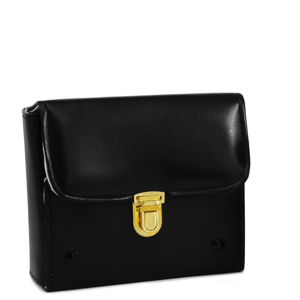Astuccio rigido in pelle ecologica nera completo di tre bottiglie in vetro per oli Santi.