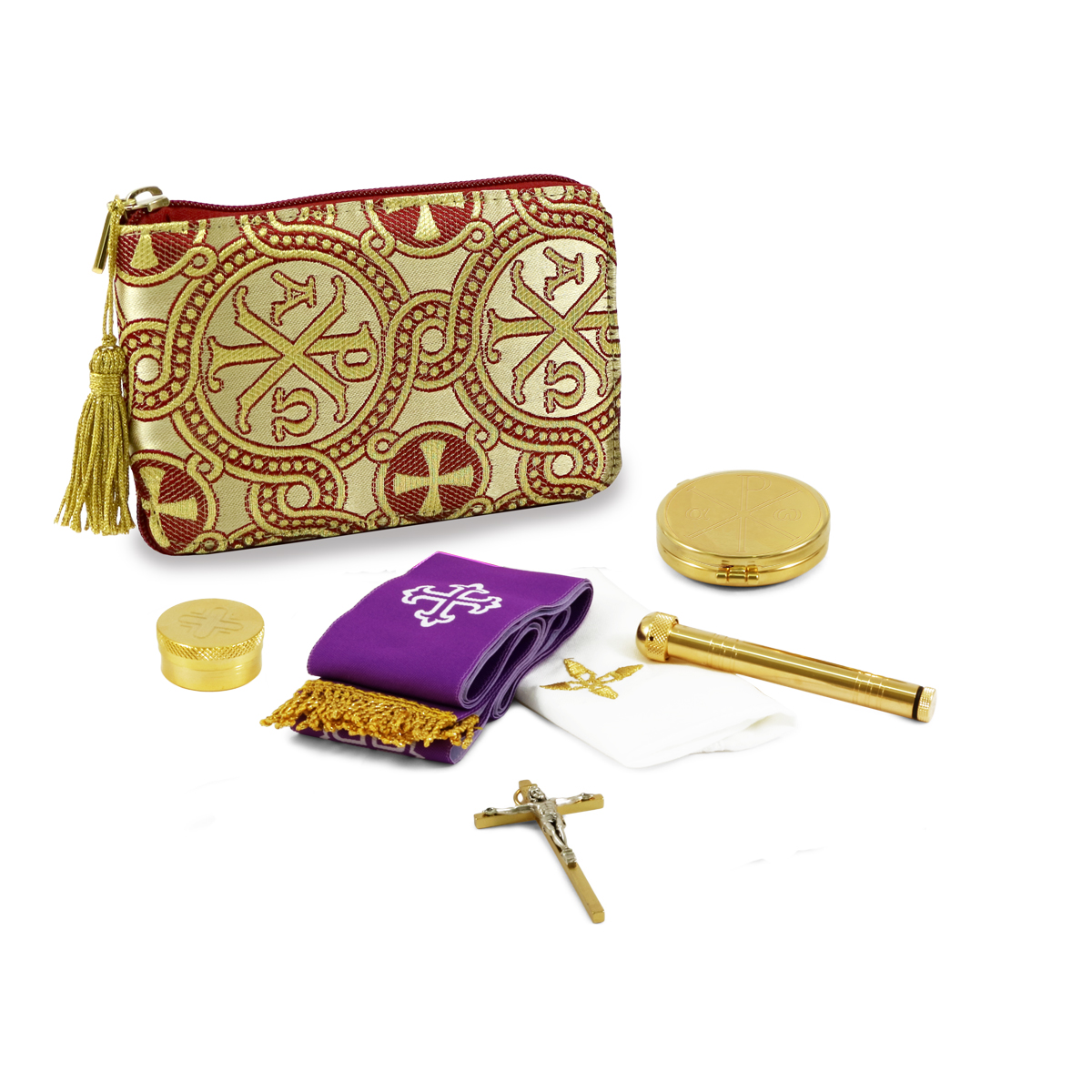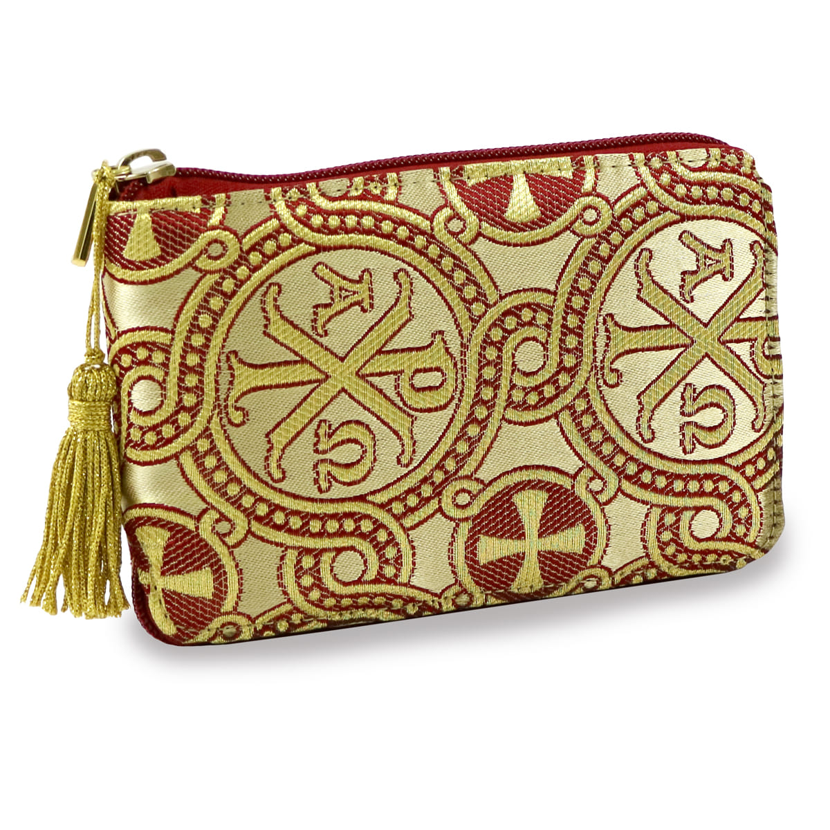 Astuccio portaviatico tascabile in pregiato tessuto broccato Alfa e Omega.