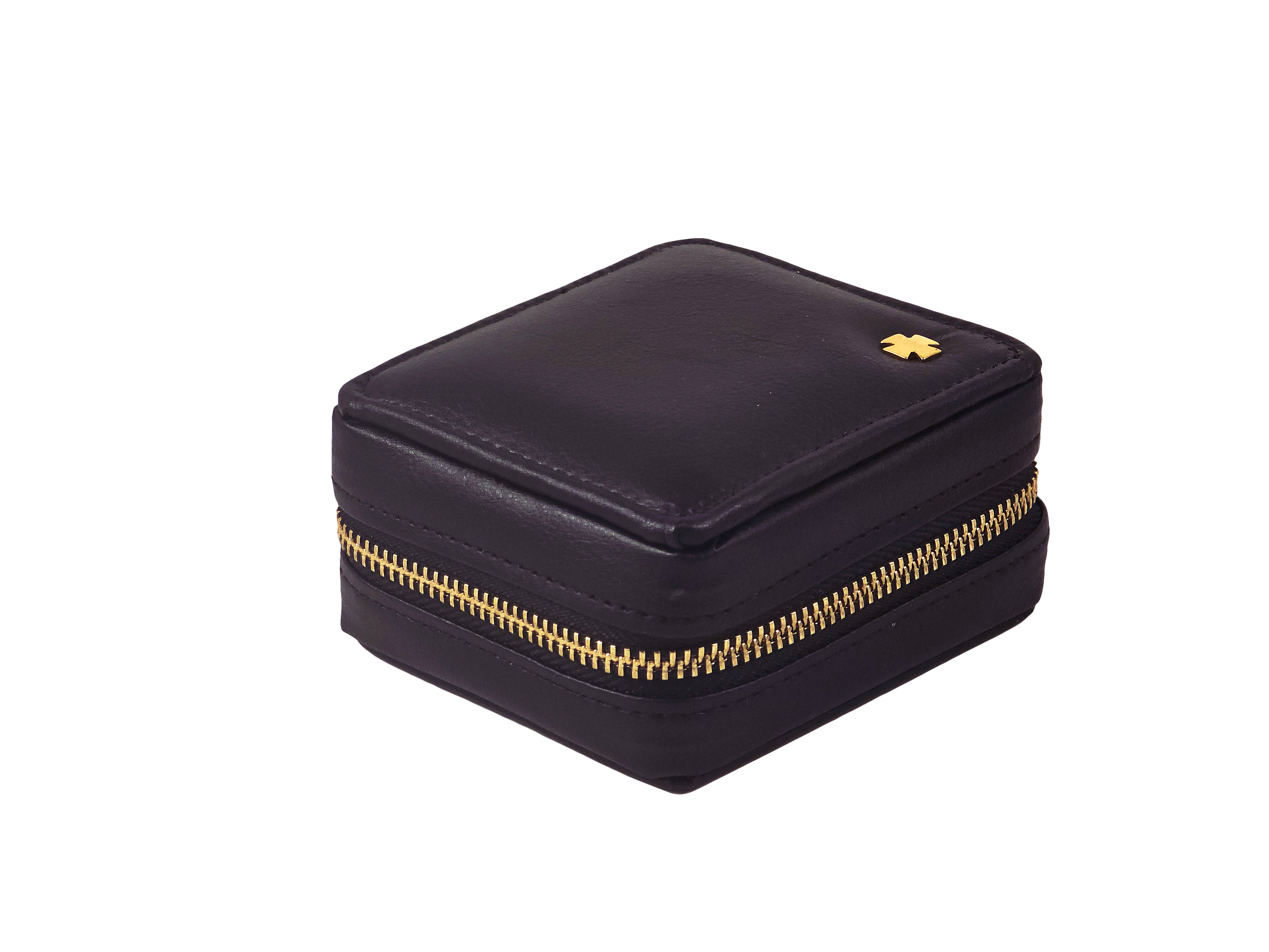 Astuccio portaviatico tascabile in Eco Pelle nera, internamente foderato in raso rosso. Nella parte frontale è presente una crocetta argentata.