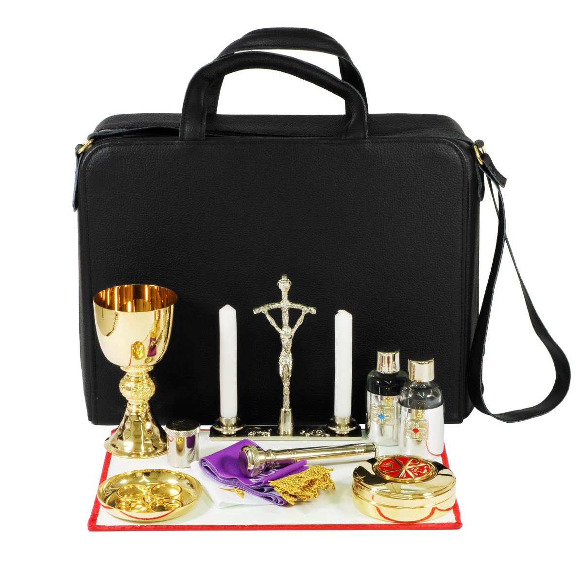 Borsa in Vera Pelle con tracolla, internamente foderata in Raso rosso e completa di tutto il necessario per la Celebrazione.