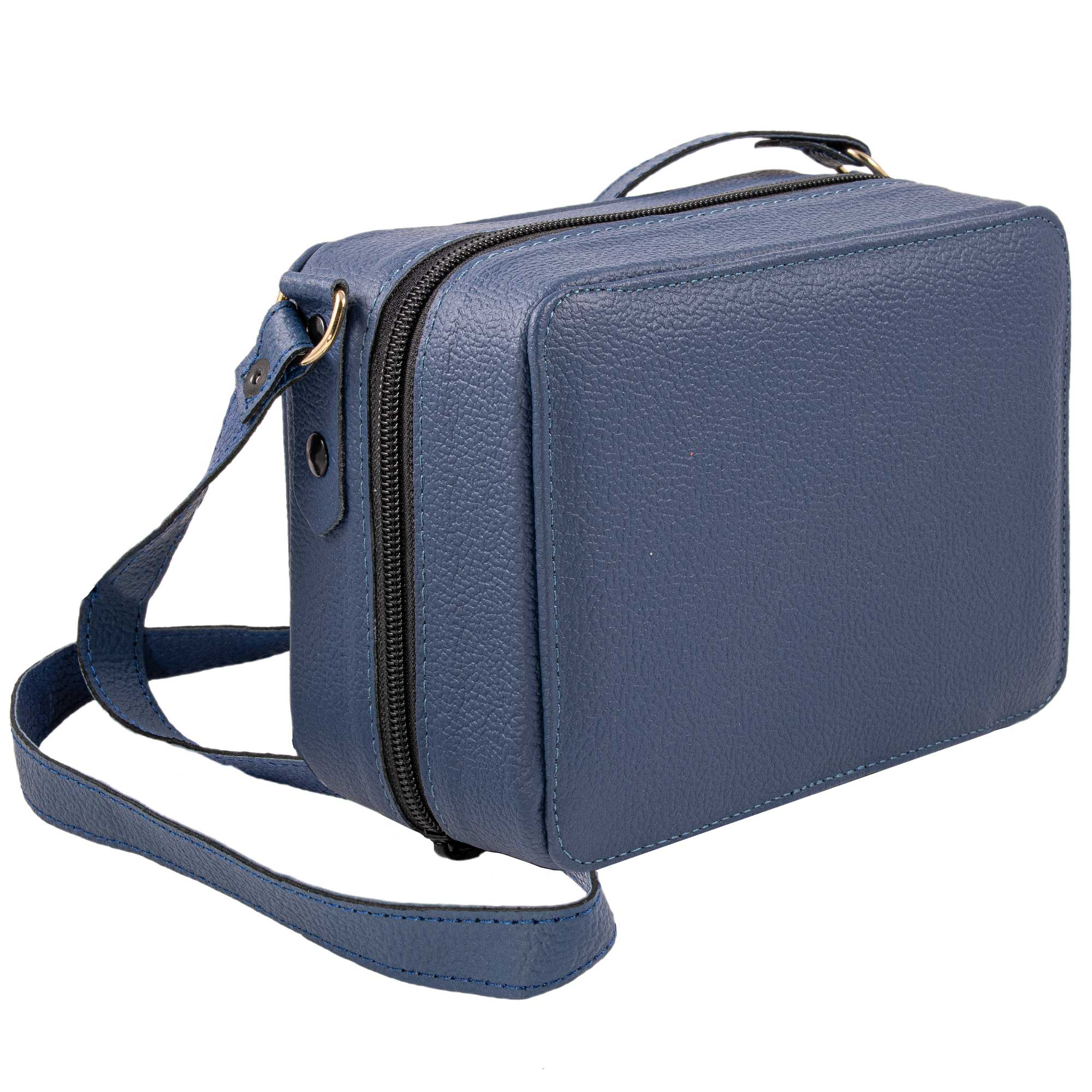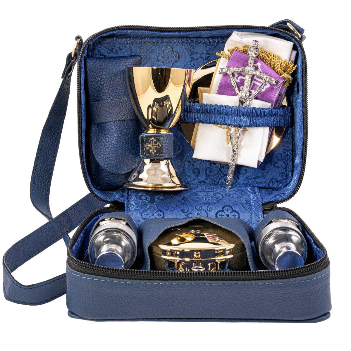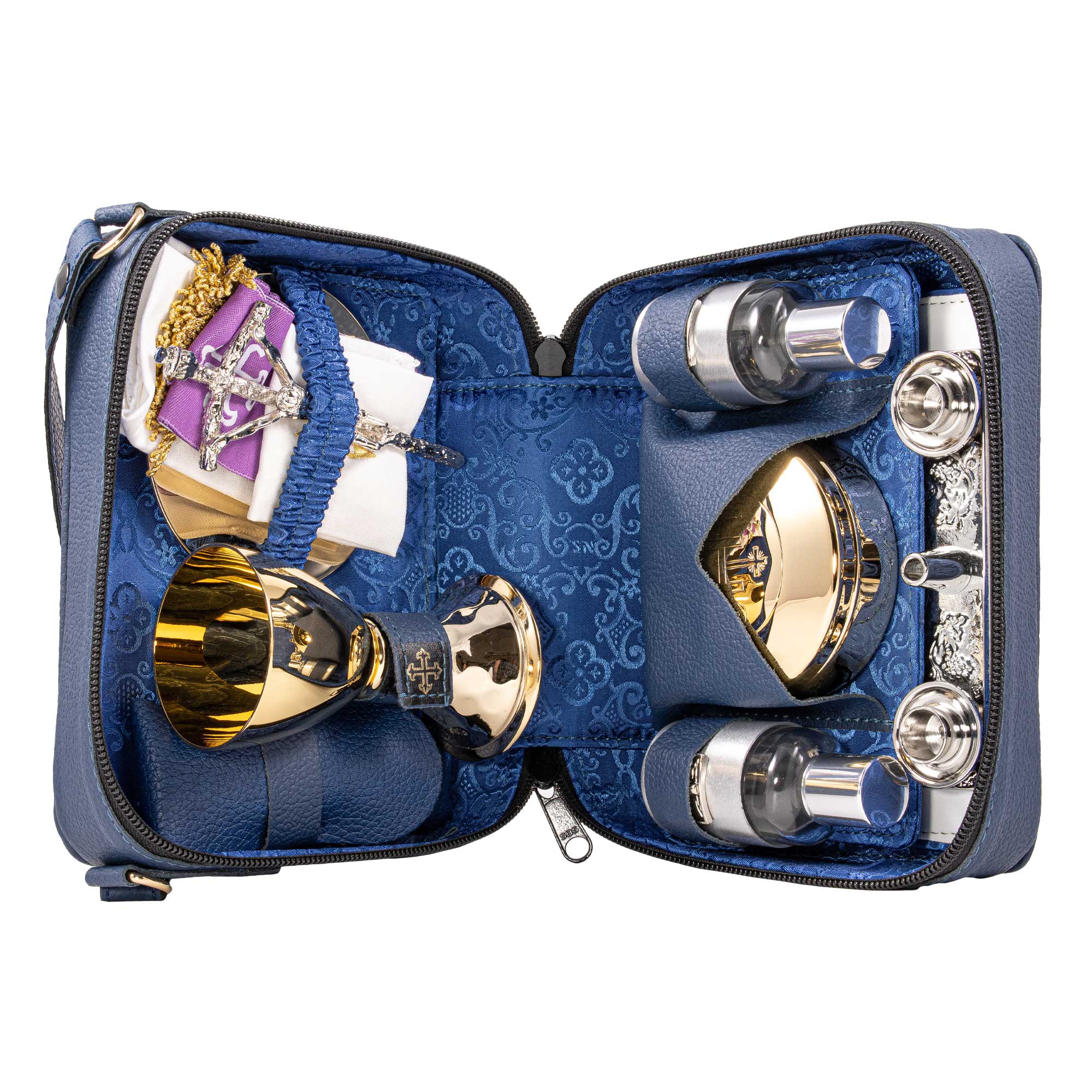 Borsello in Vera Pelle Blu con tracolla, internamente foderato in Raso blu e completo di tutto il necessario per la celebrazione all' aperto.