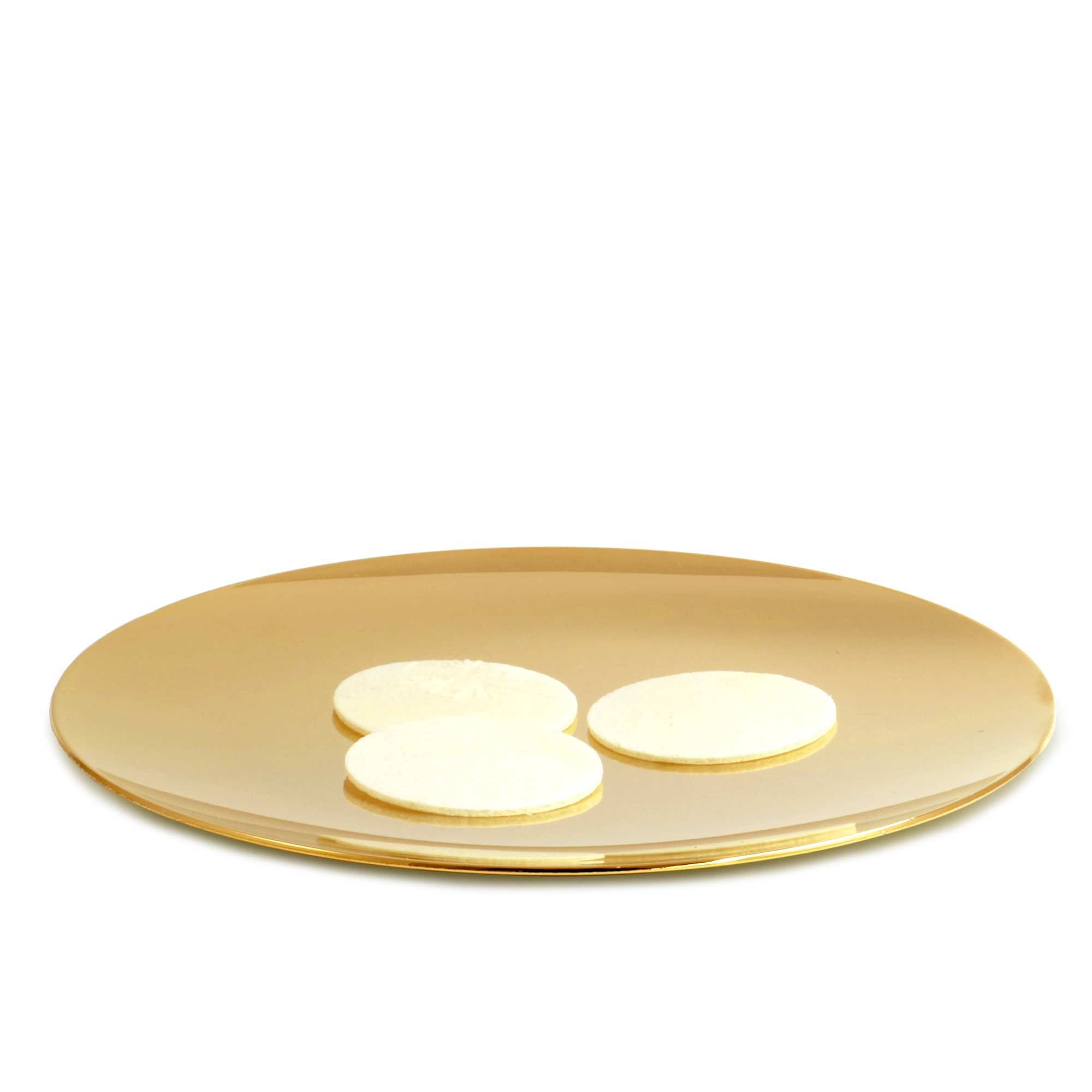 -Teca porta ostie in ottone dorato con incisione IHS. La teca ha un diametro di 8 cm. e contiene circa 40 particole.