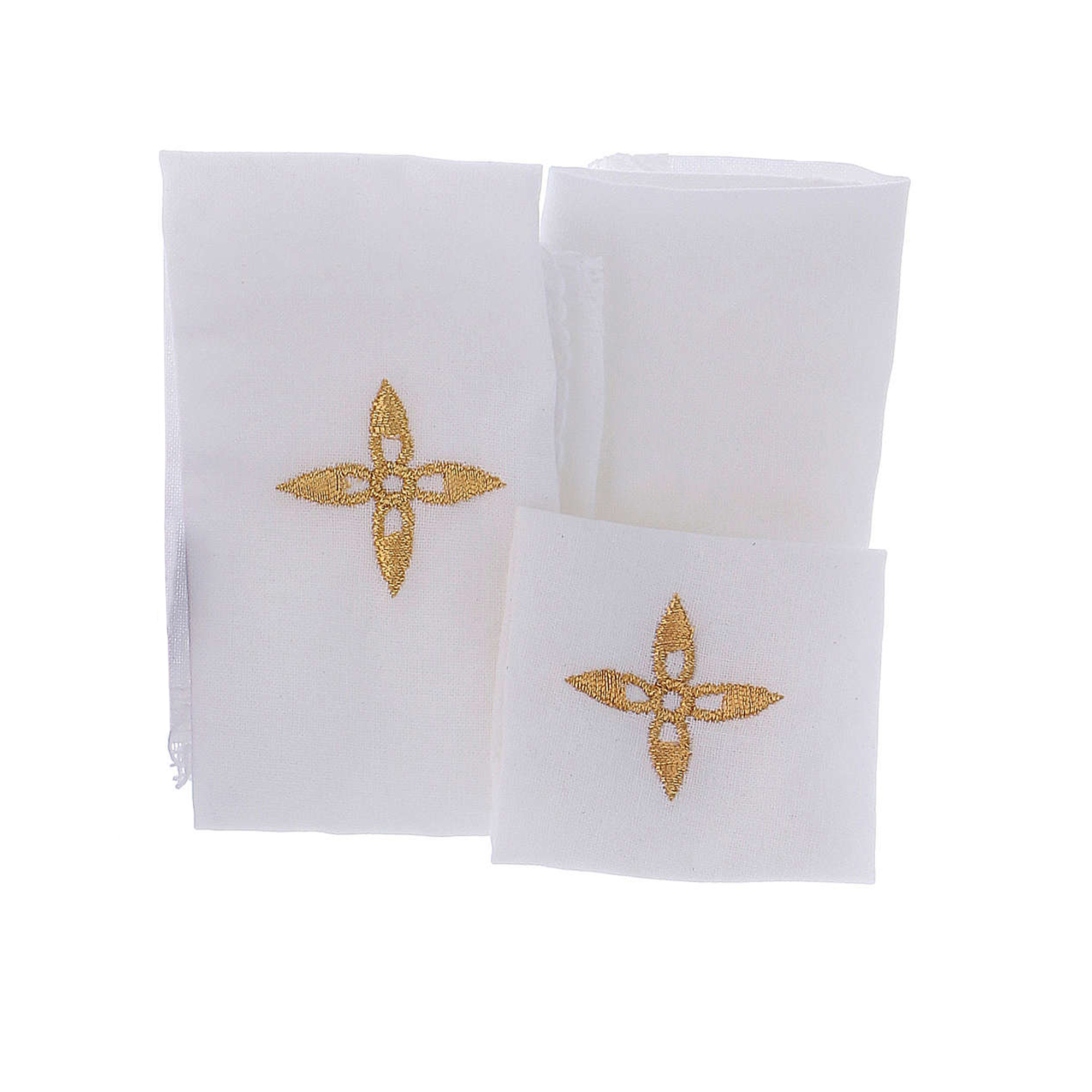 -Set di 3 tovaglie in cotone 100% con croce ricamata a filo dorato.