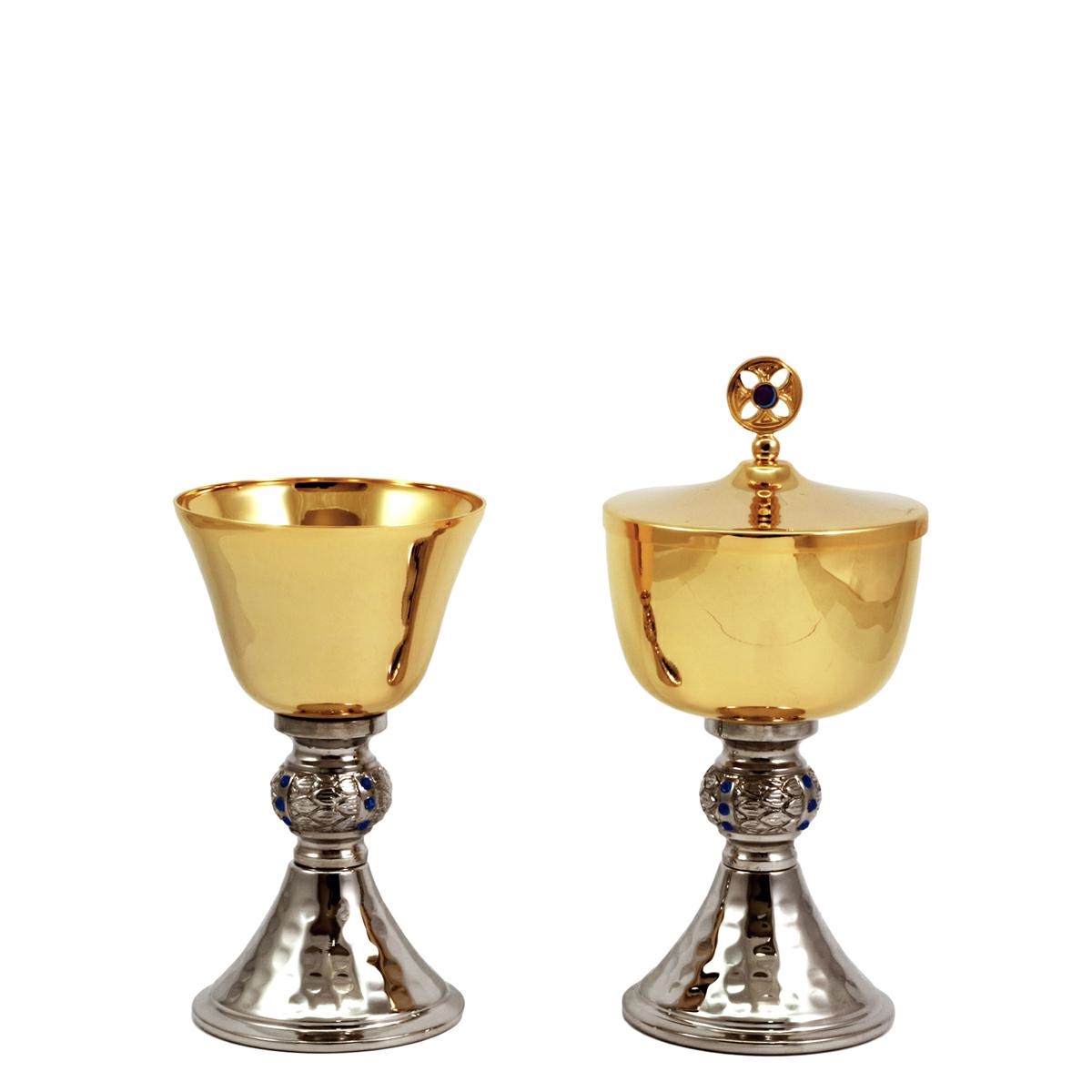 CALICE E PISSIDE BICOLORE CON PIETRE BLU
