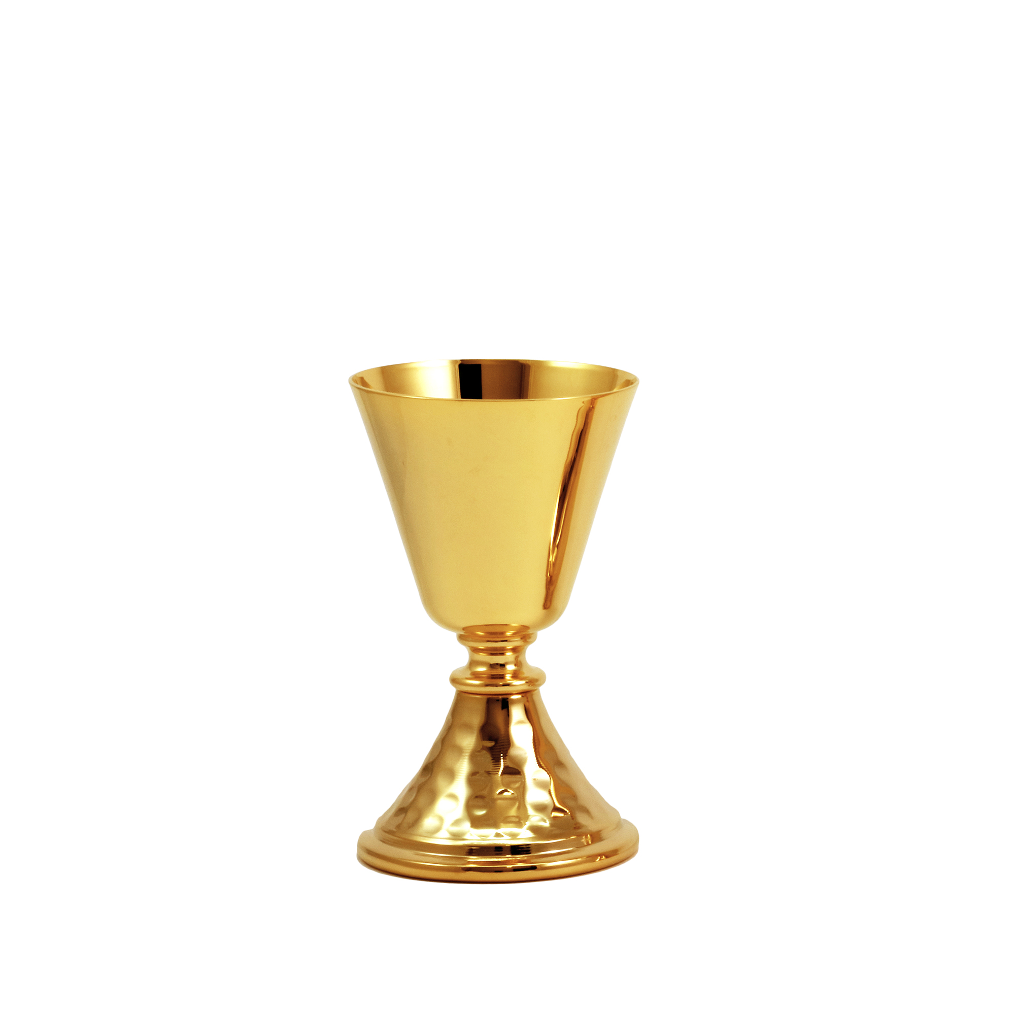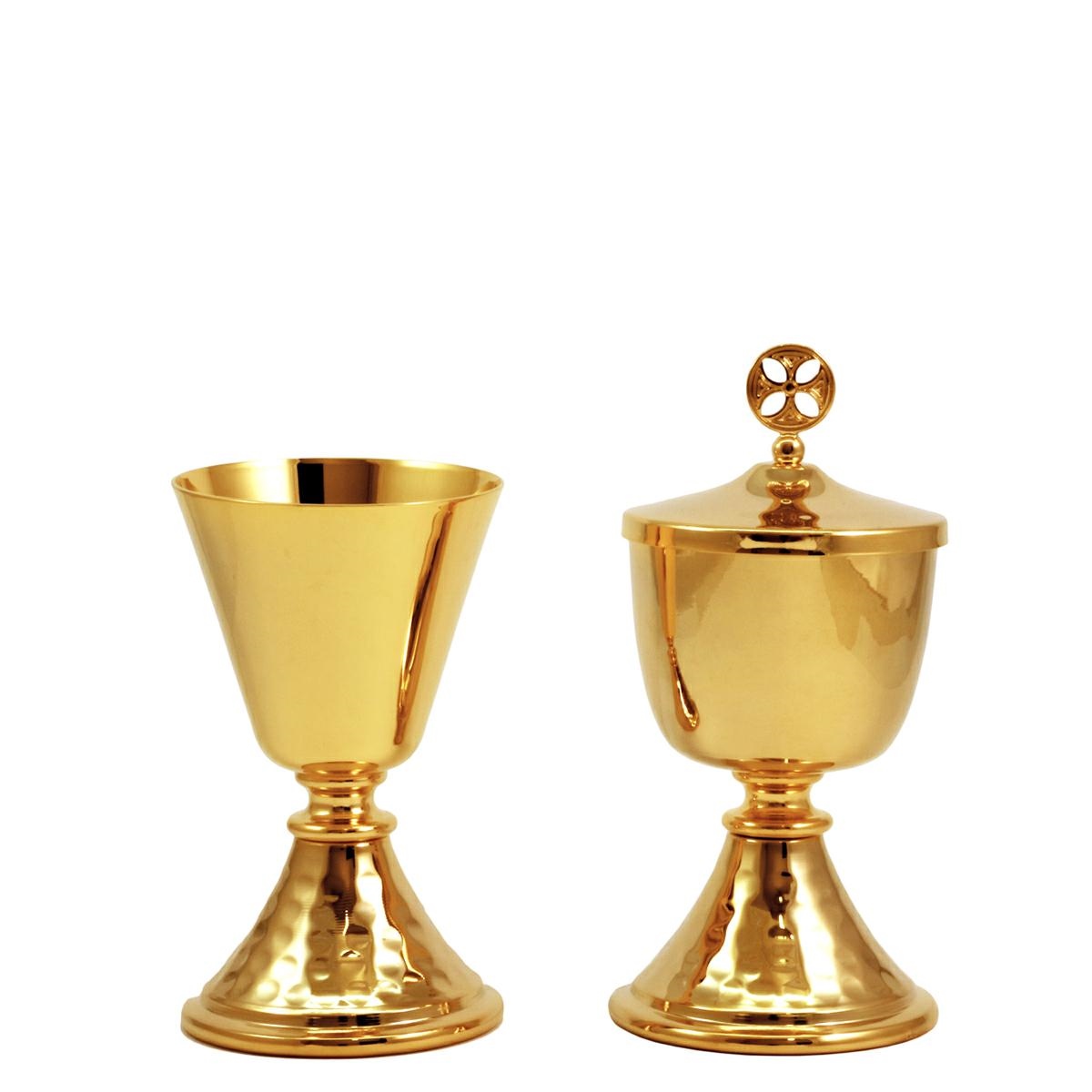 Calice e Pisside da viaggio in ottone dorato con base martellata.