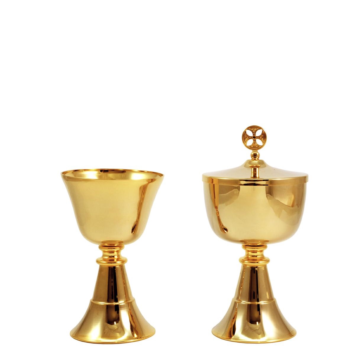 Calice e Pisside da viaggio in ottone dorato con base semplice.