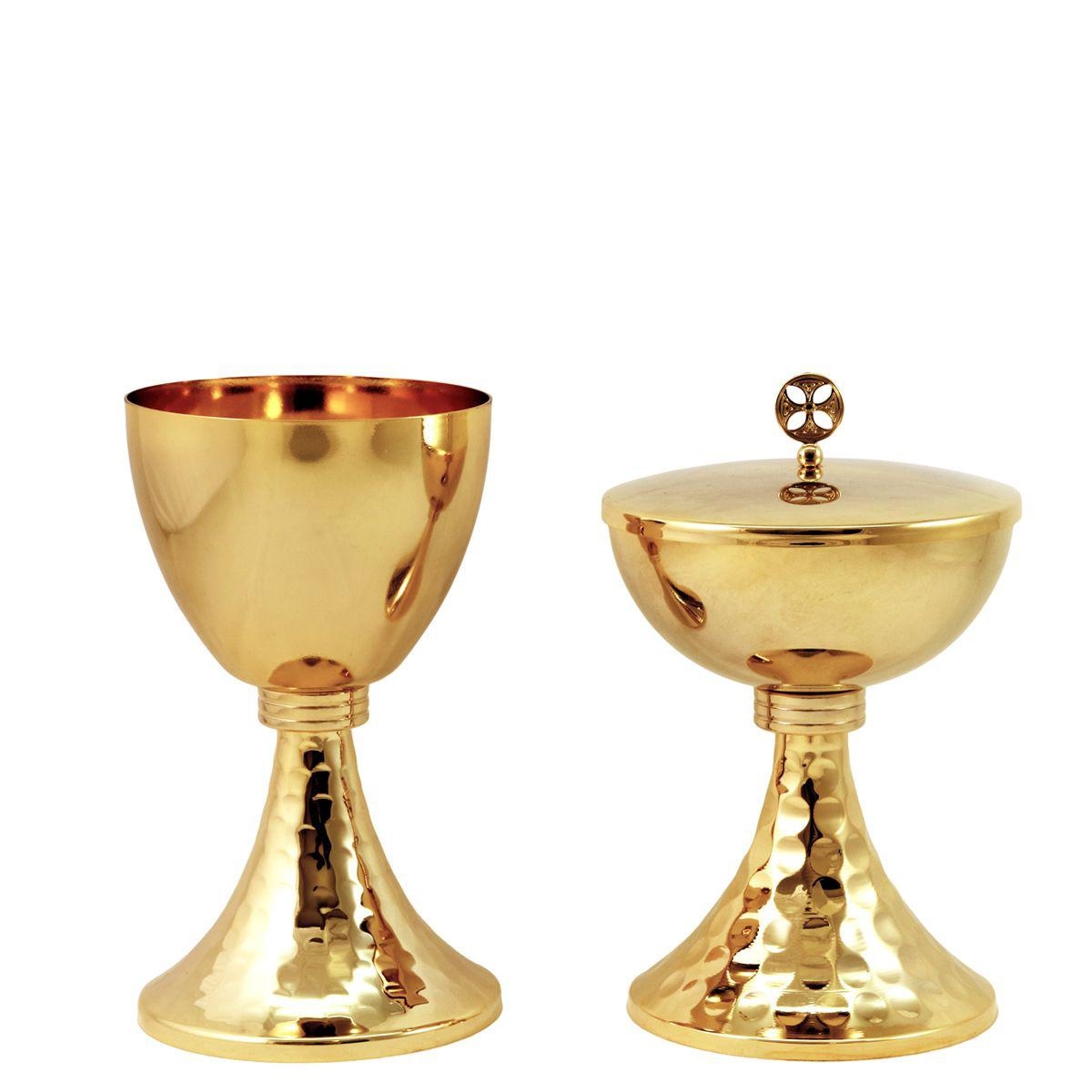 CALICE E PISSIDE DORATI CON BASE MARTELLATA