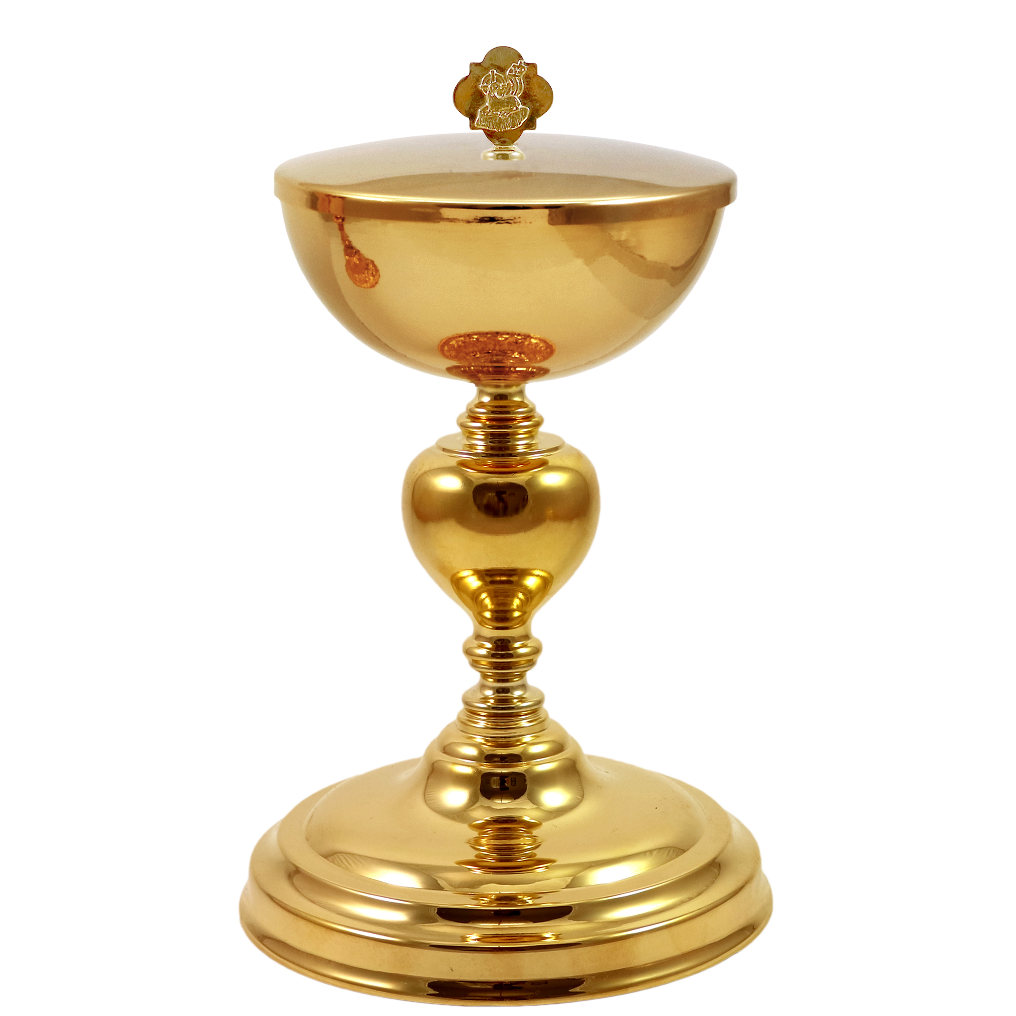 The Ciborium is 24 cm tall and has a 12 cm diameter cup that can hold up to 150 hosts.