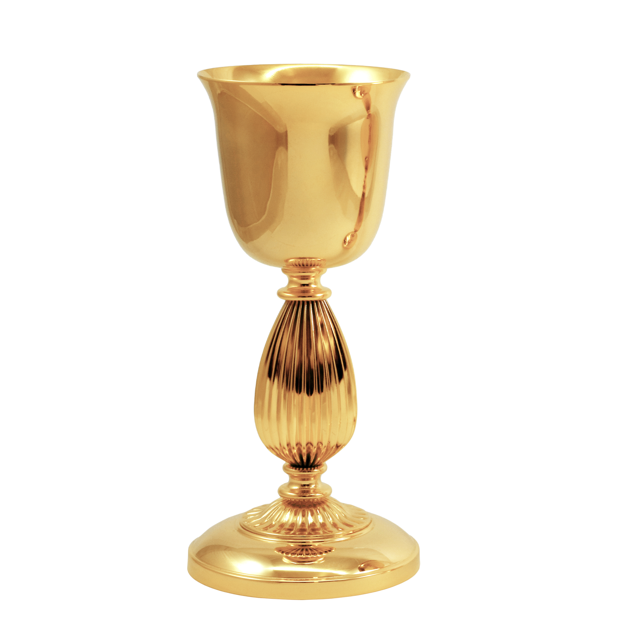 Calice e Pisside in ottone dorato con particolare nodo con rigature in finitura dorata.