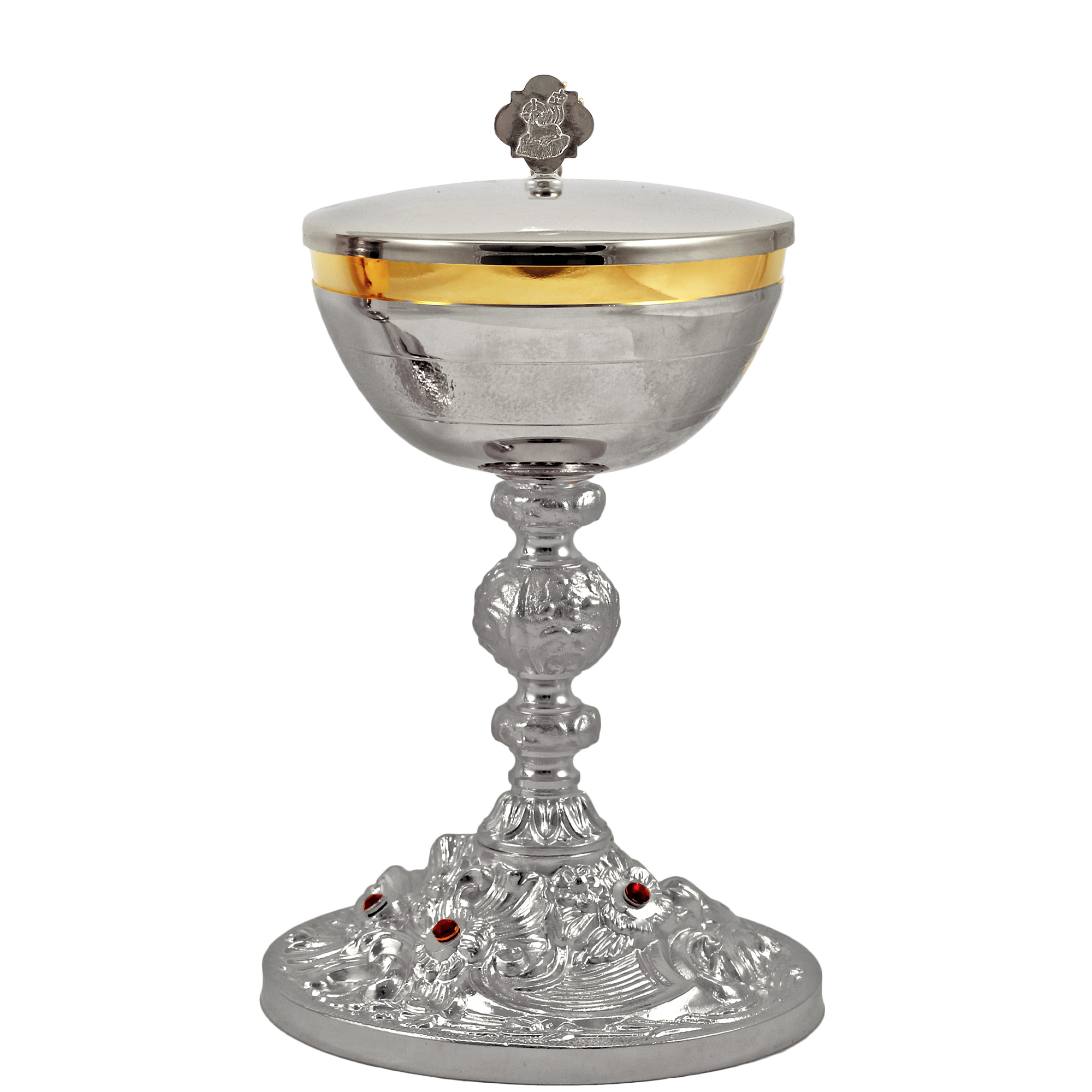 CALICE E PISSIDE TONO ARGENTO CON BASE BAROCCA