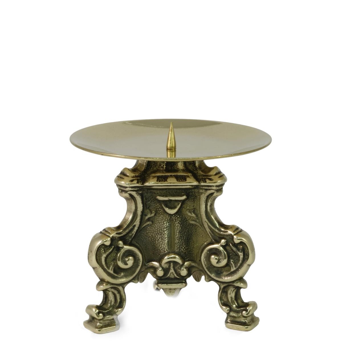 Antique brass altar candlestick on a Rococo base, with a candle case