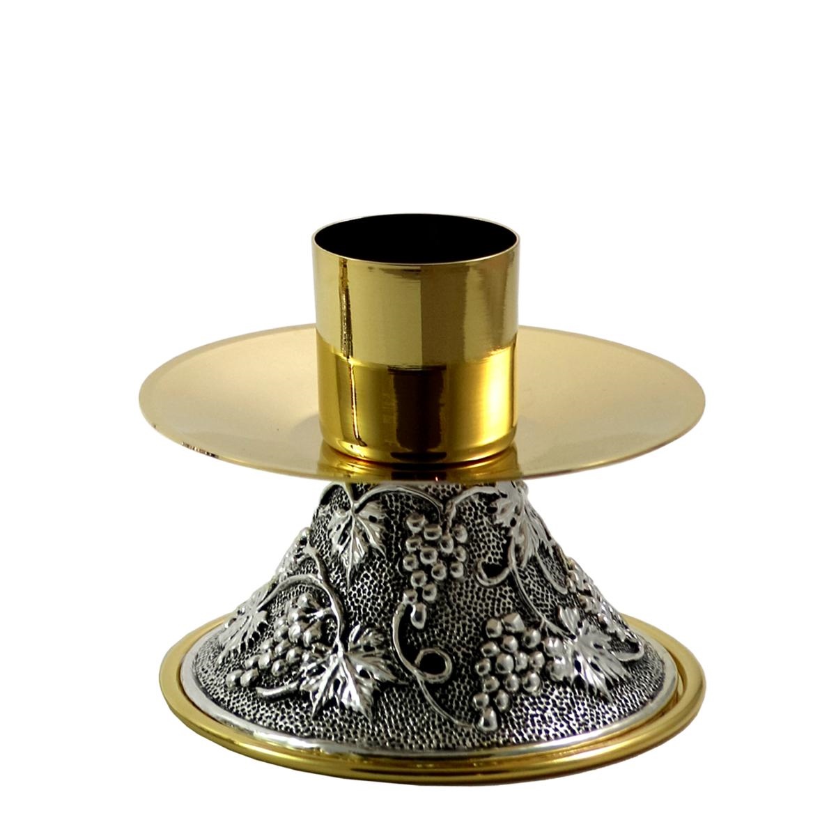 CANDELIERE SU BASE UVA E VITE ARGENTO ANTICO H. 10 CM.