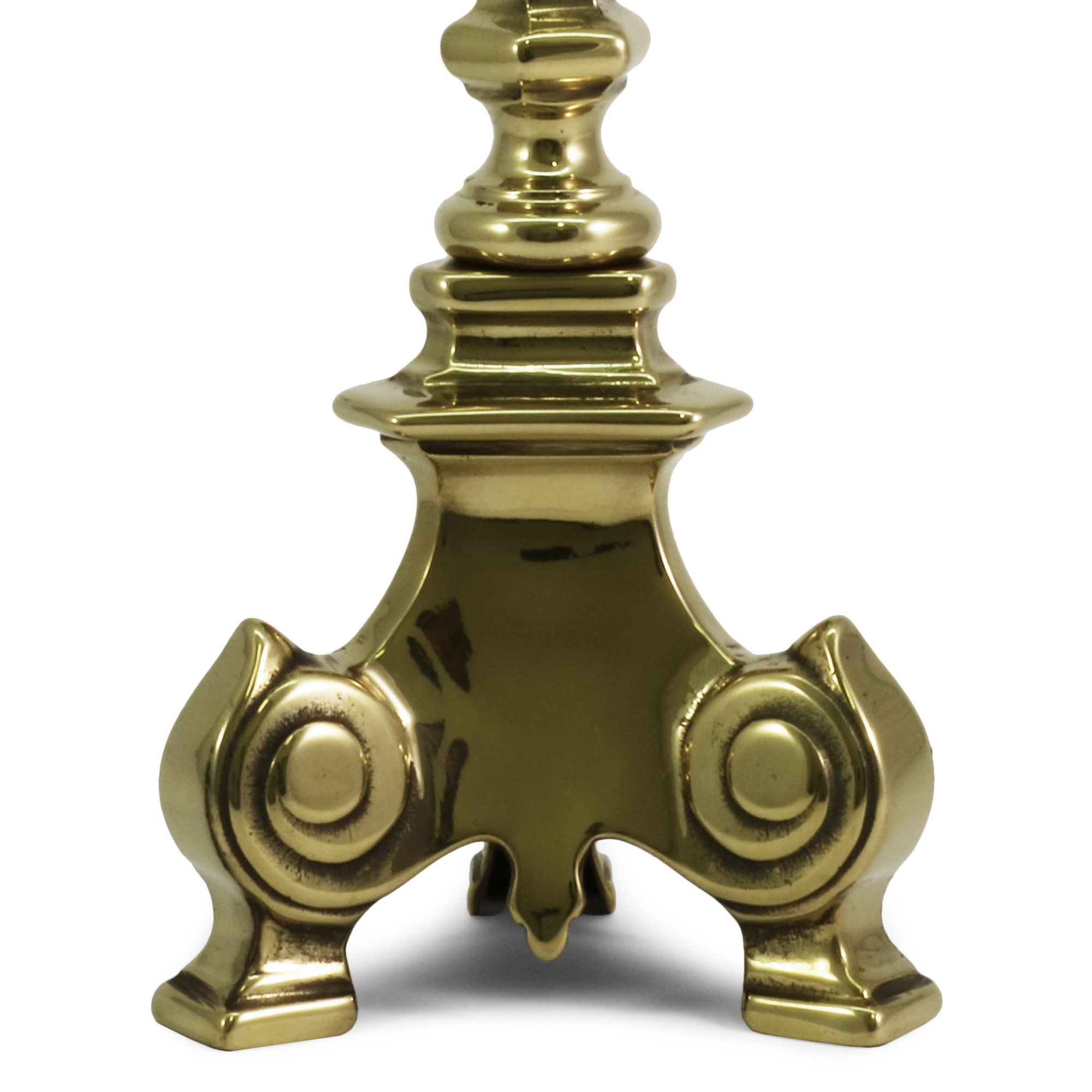Candelieri da altare stile barocco, in ottone lucido con bossolo per candela a cera liquida da Ø 4 cm.