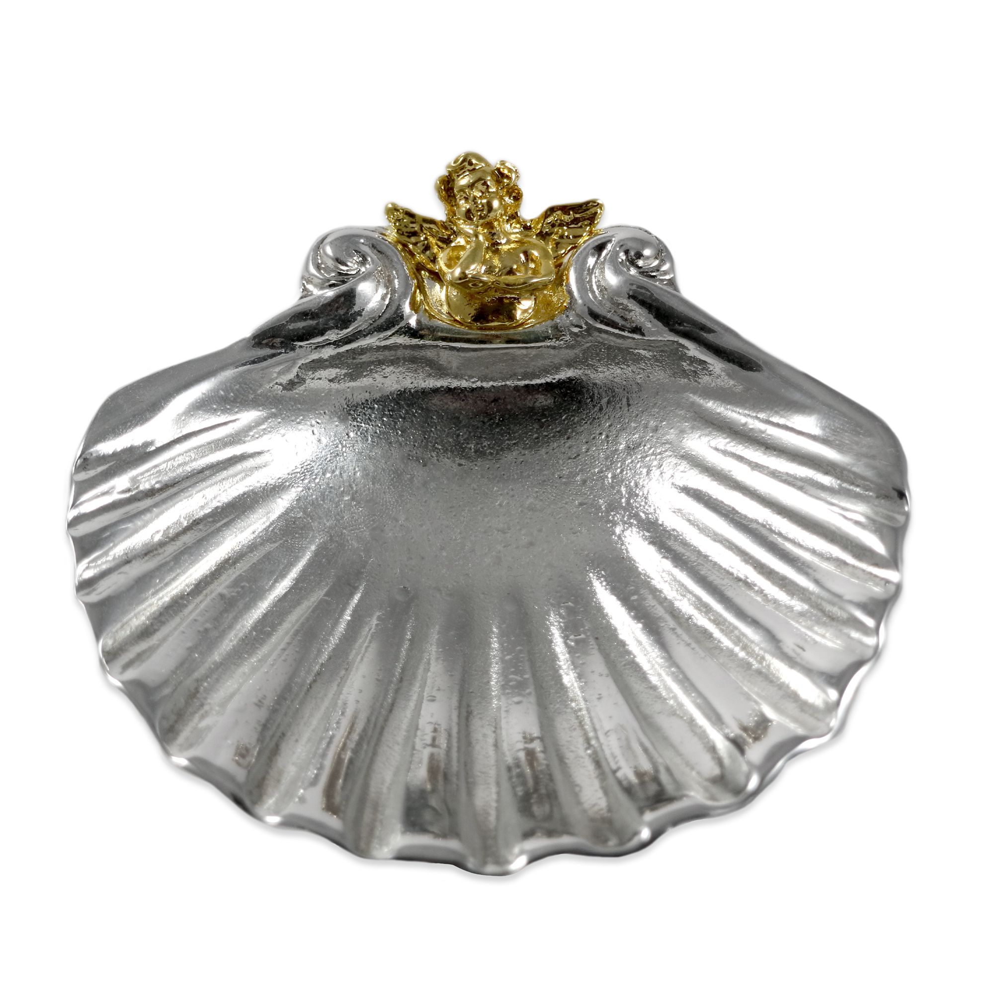 Conchiglia Battesimale con Angioletto dorato. Dotata di tre piedini sulla base per garantirne la stabilità.