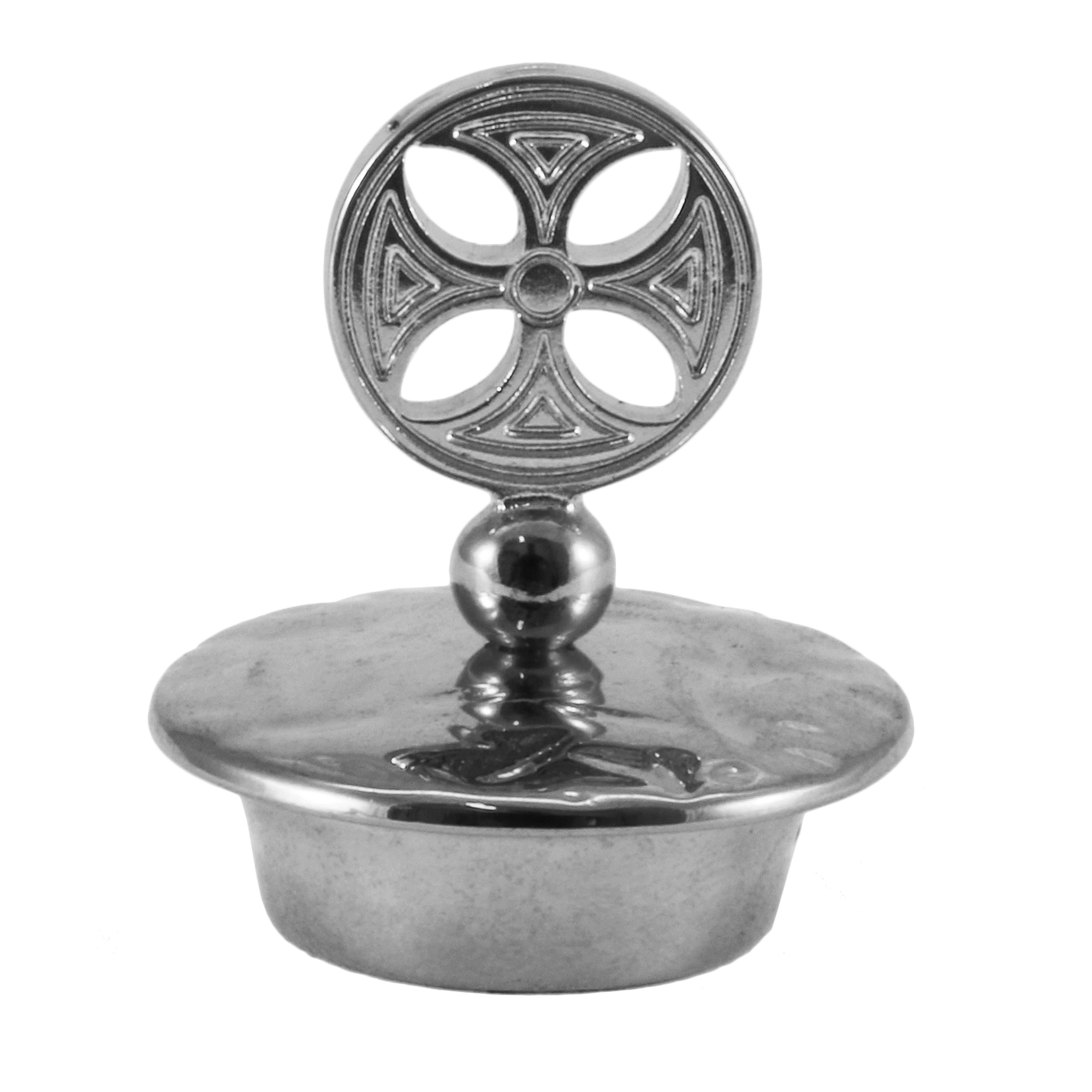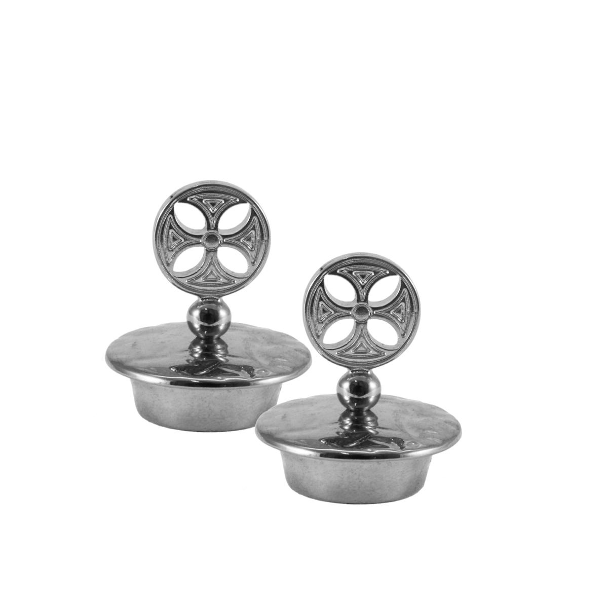 Coppia tappi tono argento per brocchette in vetro, con Croce tonda.