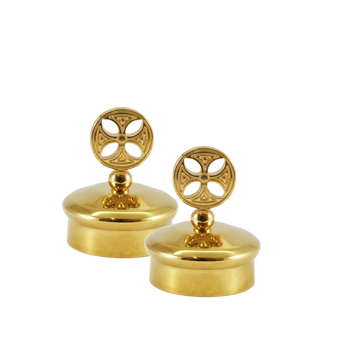 Coppia tappi dorati per brocchette in vetro, con Croce fiore.