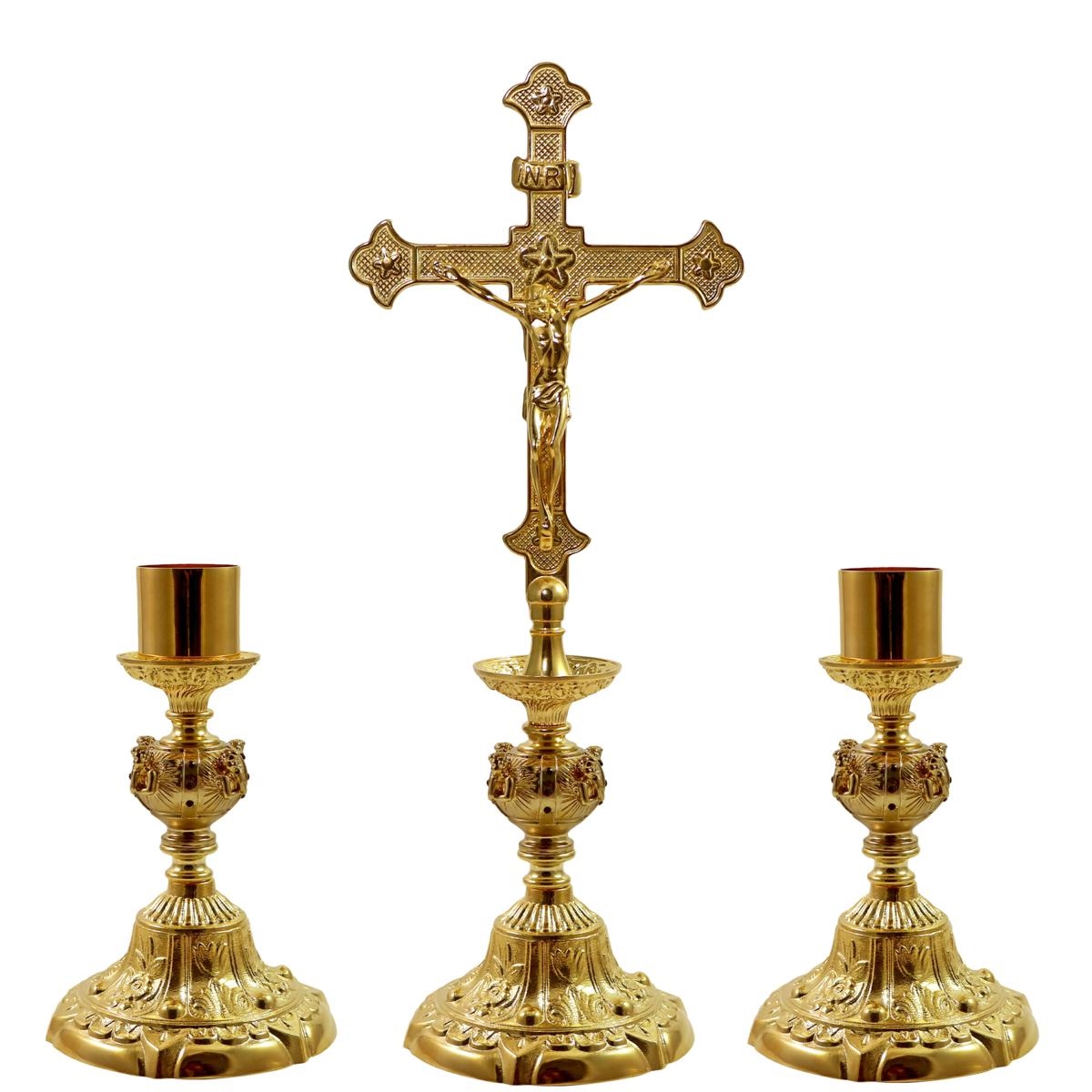 CROCE + 2 CANDELIERI DORATI