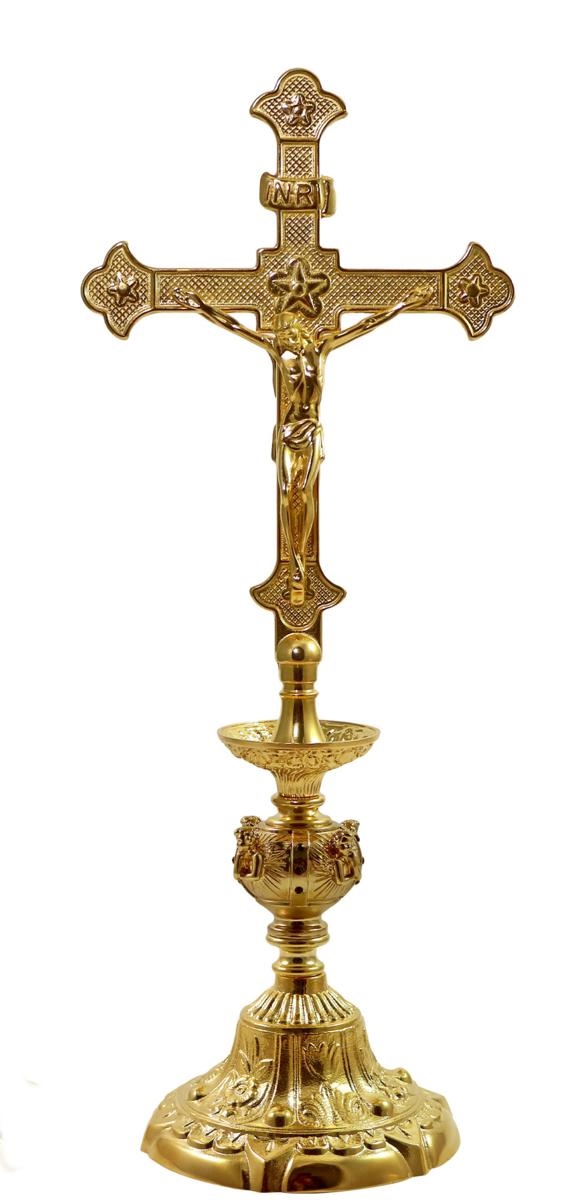La Croce ha il doppio Corpo ed è alta 41 cm. mentre il Candeliere è alto 21 cm.