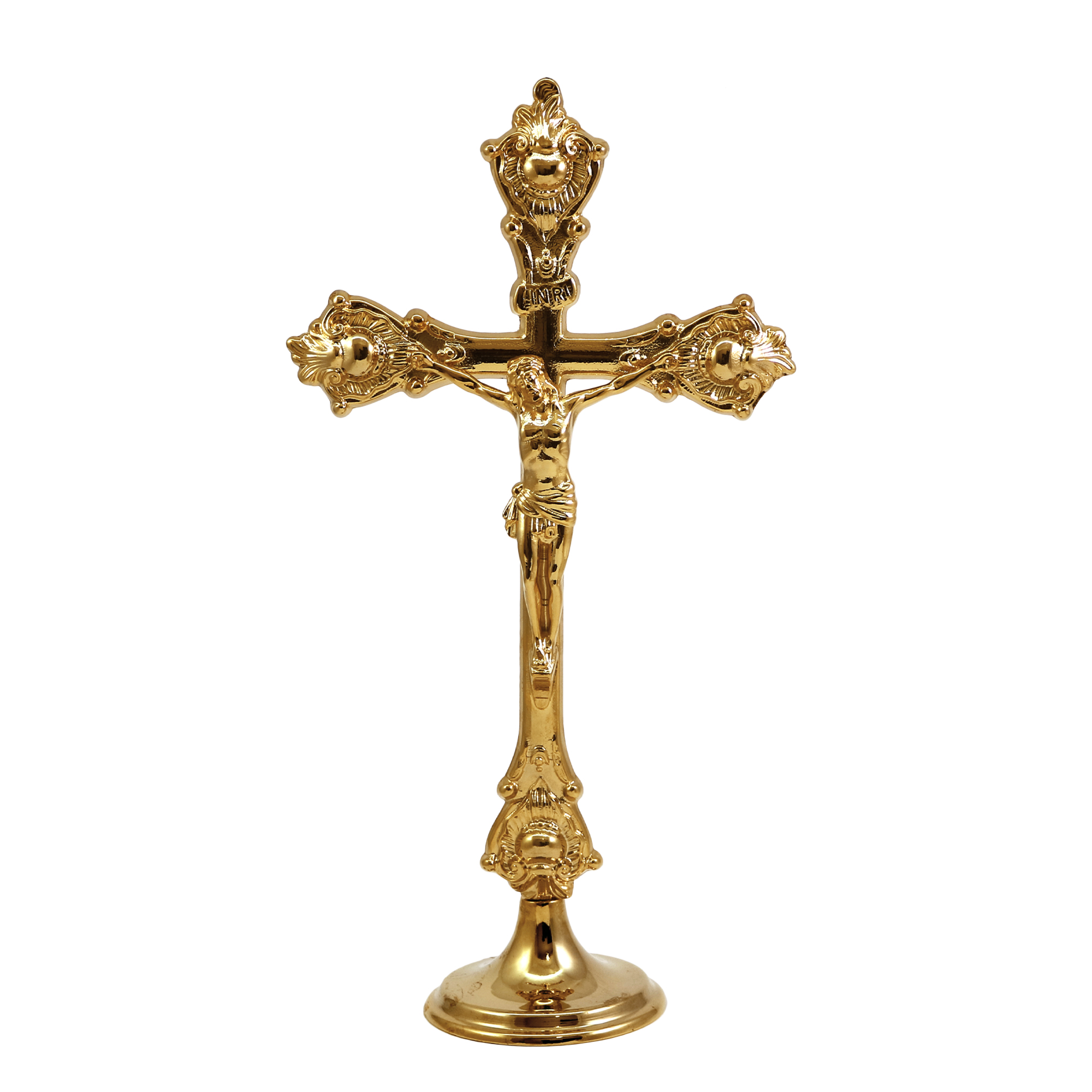 La Croce ha un altezza 36 cm. e il candeliere è alto 6 cm. con bossolo per candela a cera liquida da Ø 4 cm.