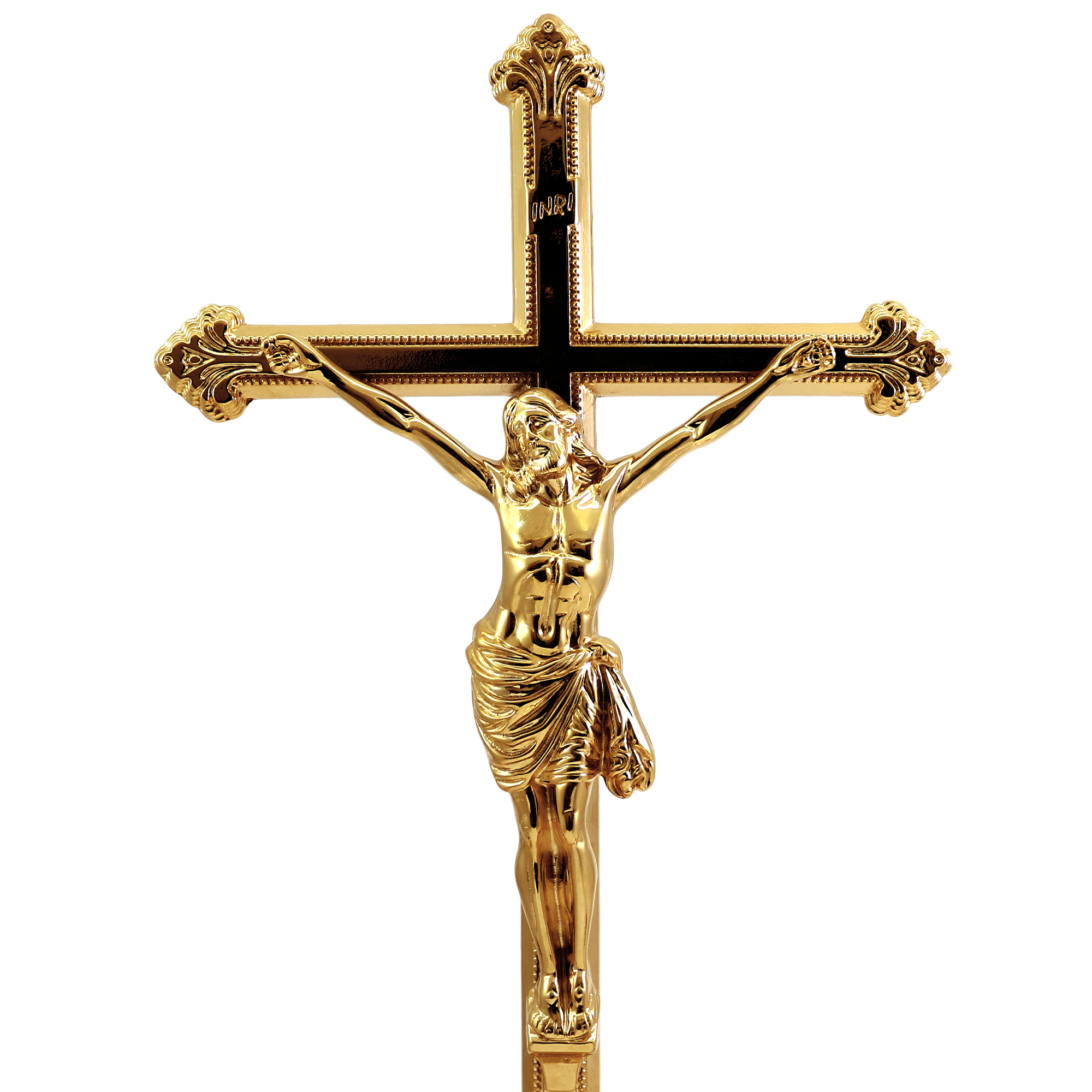 La Croce ha un altezza 53 cm. e il candeliere è alto 8 cm. con bossolo per candela a cera liquida da Ø 4 cm.